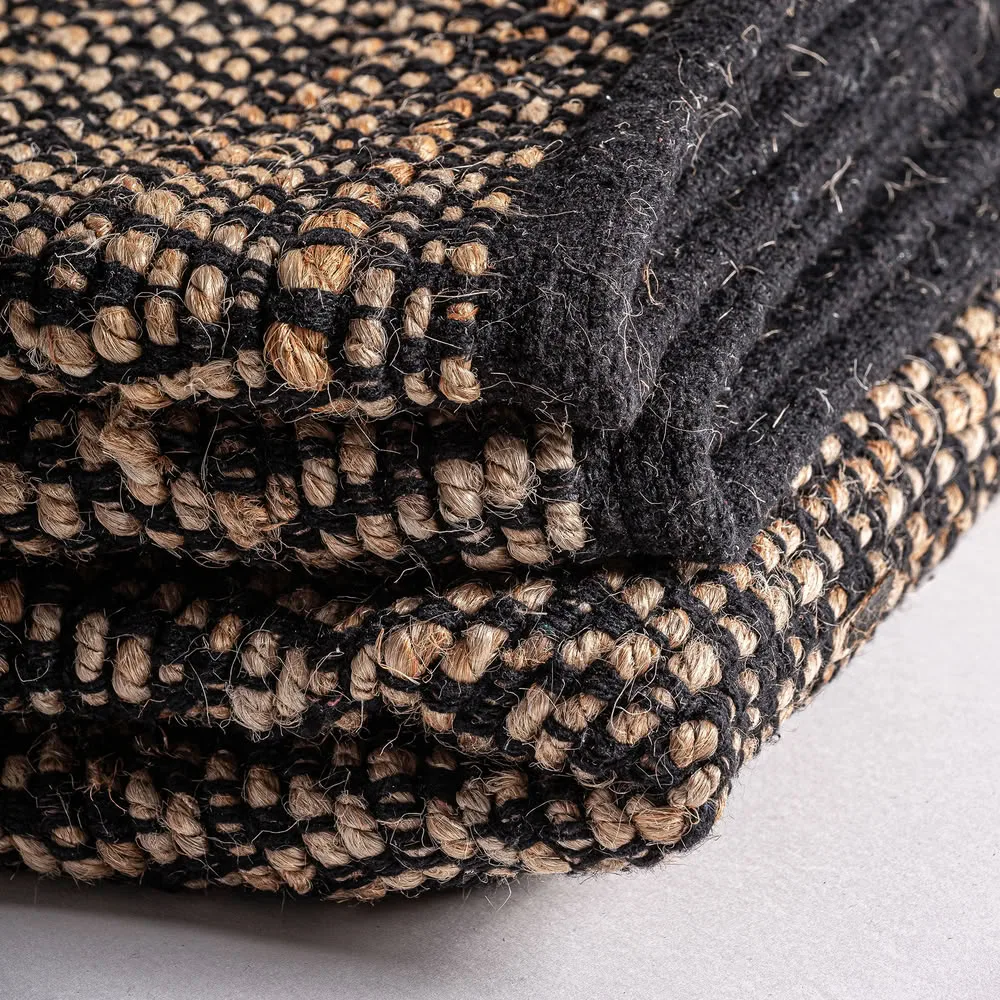 Alfombra rectangular elara, en color negro, de estilo vintage. Fabricado en yute, combinado con algodón.
