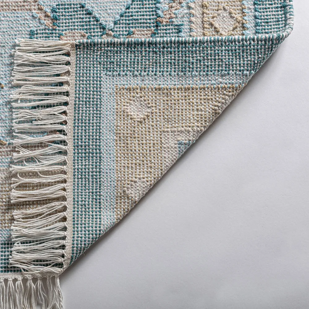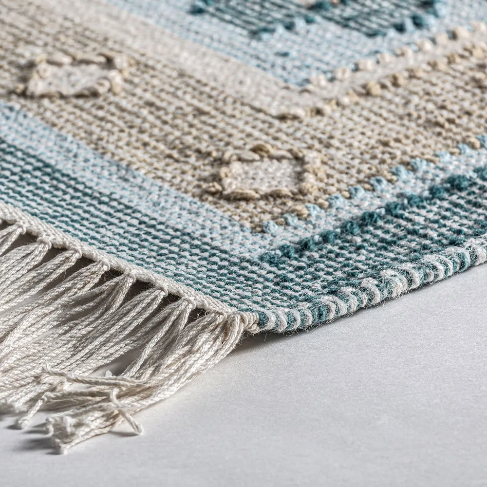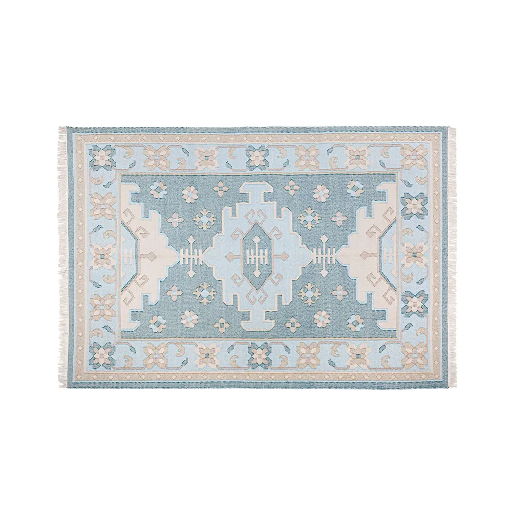 Alfombra elisea de estilo colonial fabricado en pet en color tonos de azul.