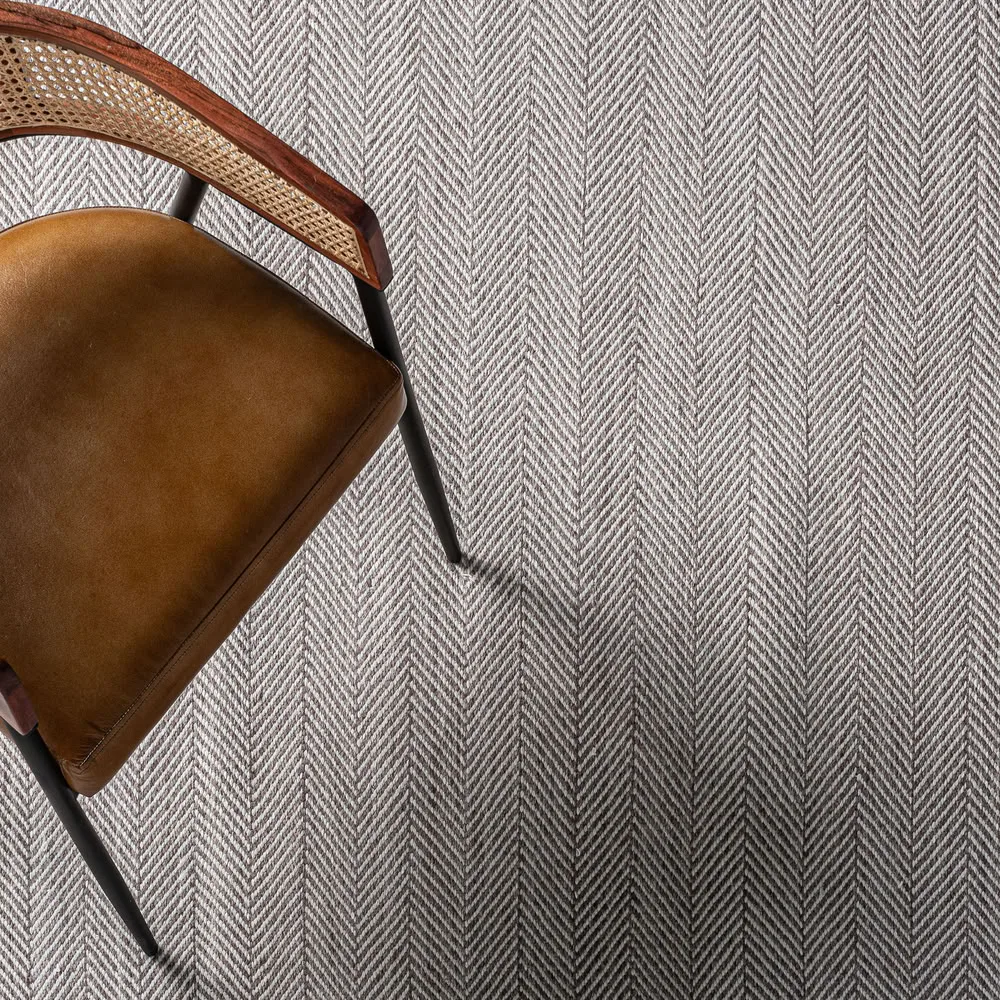 Alfombra helen de estilo colonial fabricado en pet en color blanco en color marrón.