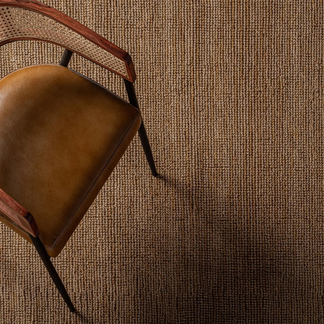 Alfombra tish de estilo boho, fabricado en yute en color tonos en marrón, combinado con algodón.