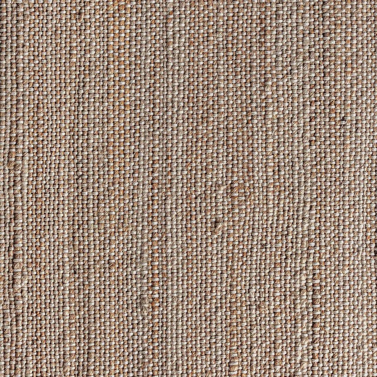 Alfombra zalika de estilo boho, fabricado en yute en color tonos en marrón, combinado con algodón.