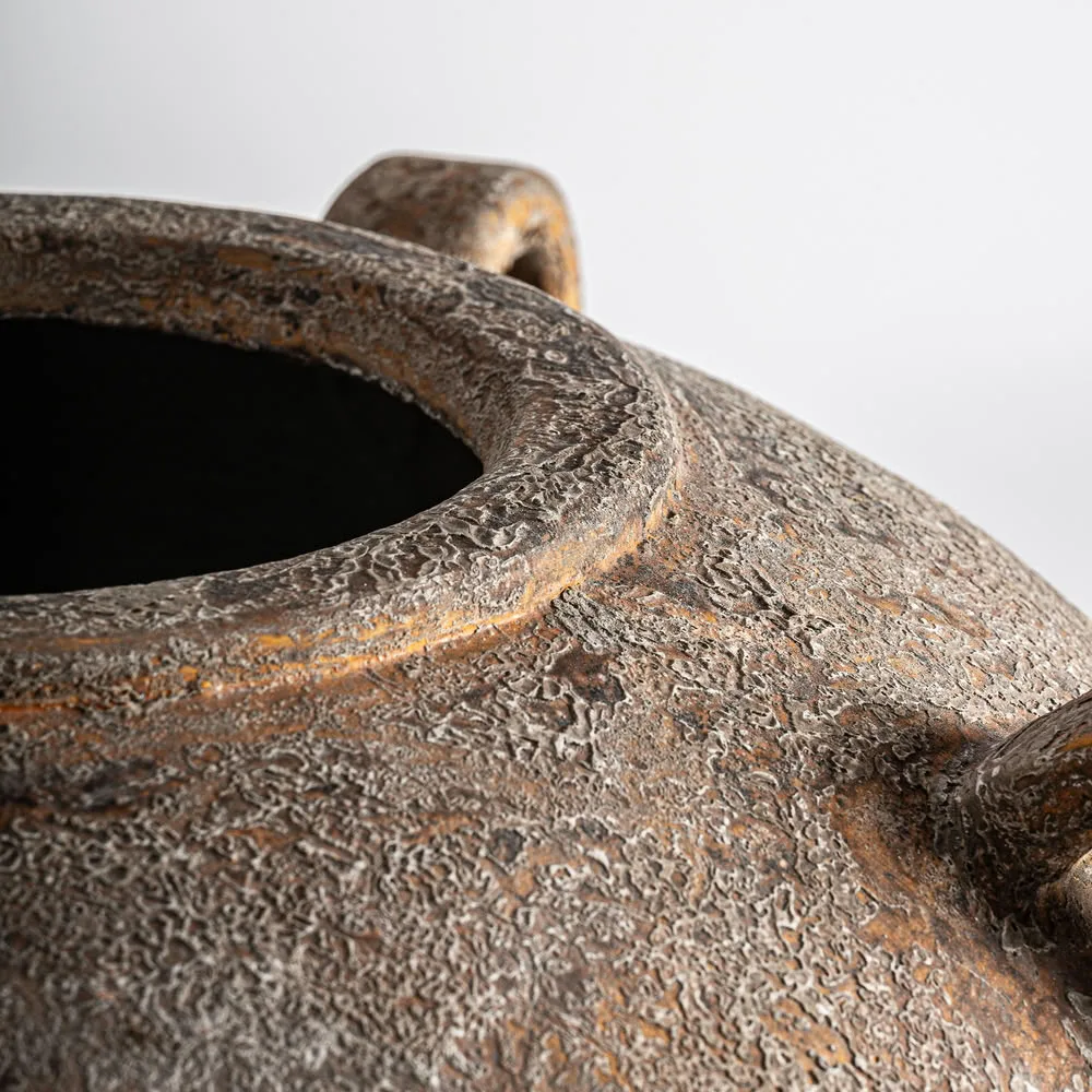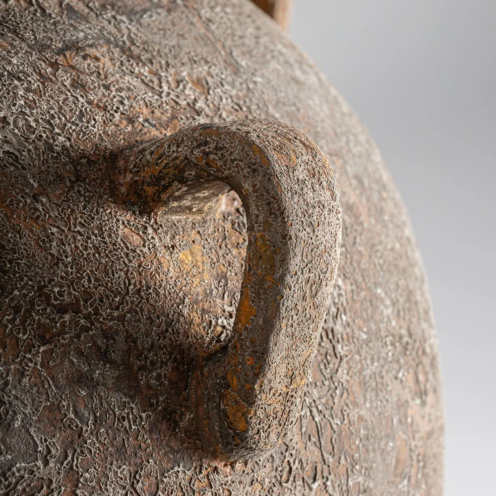 Ánfora Kalede de estilo clásico fabricado en hormigón armado en color tonos en marrón con acabado envejecido.