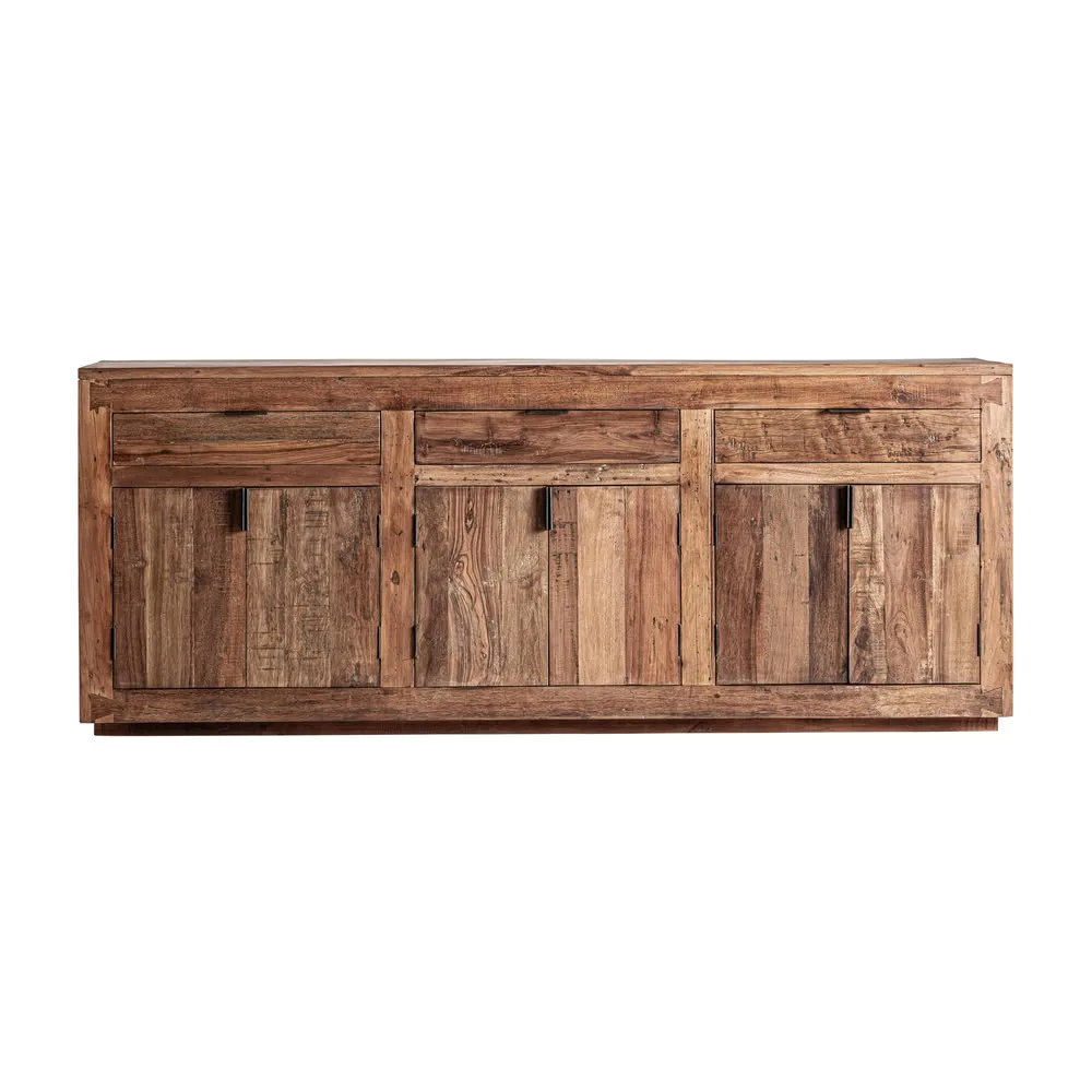 Aparador Backlyn de estilo rústico fabricado en madera recuperada en color marrón combinado con hierro en color negro.