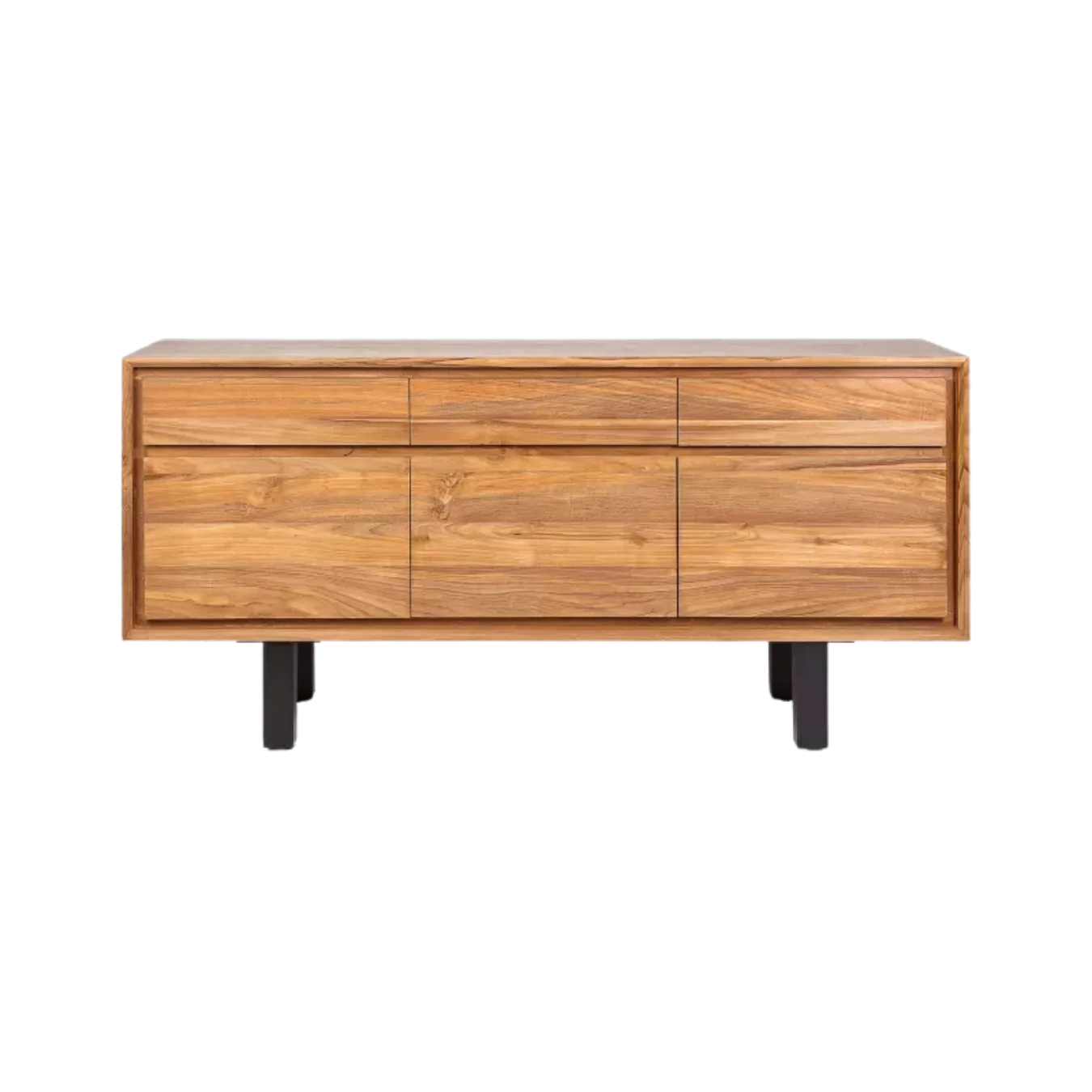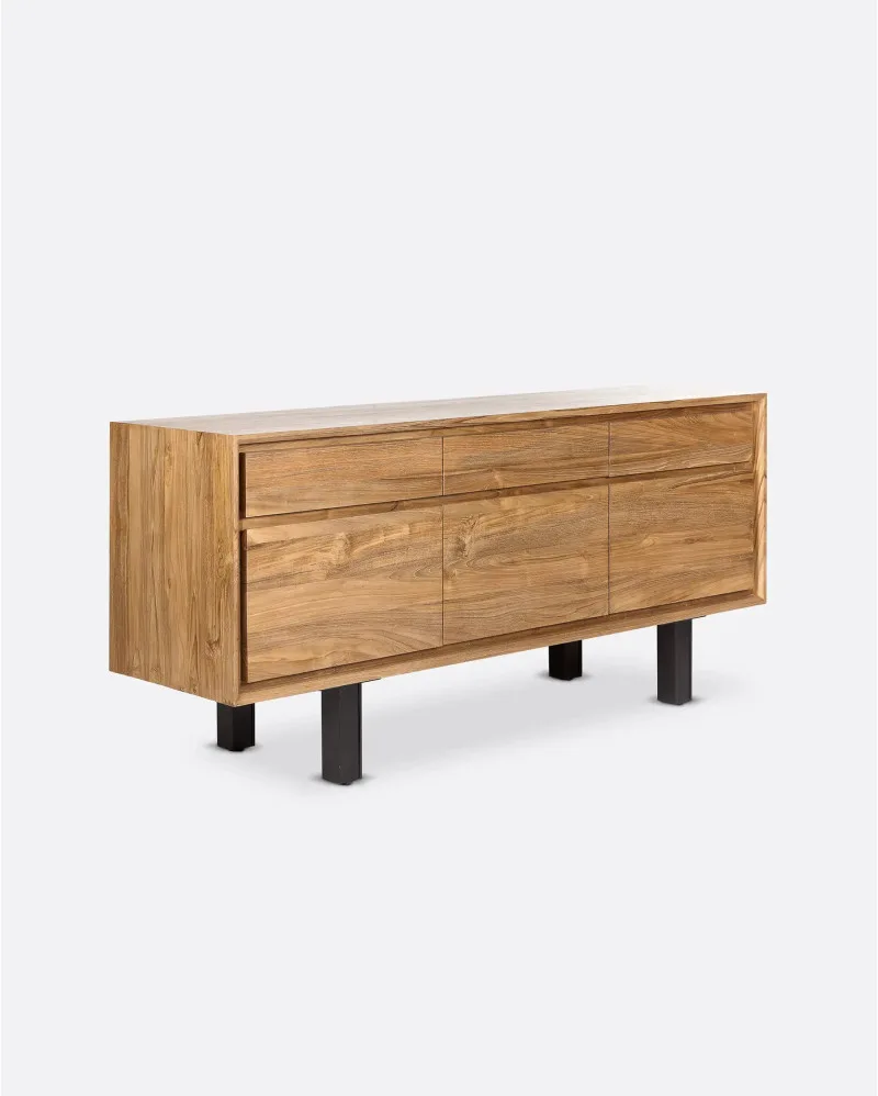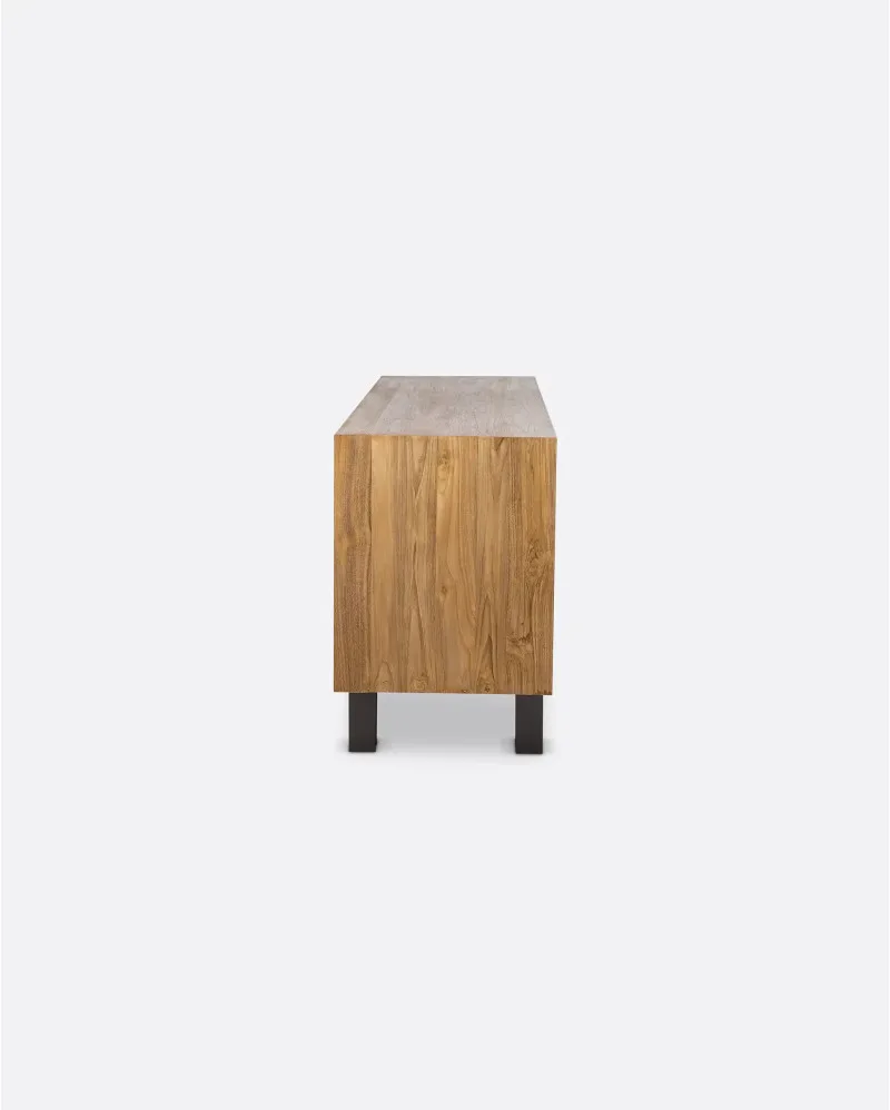 El aparador de teca reciclada y hierro LOX 160 cm de Dareels es una pieza que destaca por su equilibrio entre robustez y elegancia. Fabricado en madera maciza de teca reciclada, conserva las vetas y matices naturales que aportan autenticidad y carácter único a cada unidad.