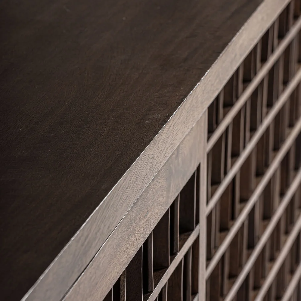 Aparador kladno de estilo art deco fabricado en madera de mango en color marrón.