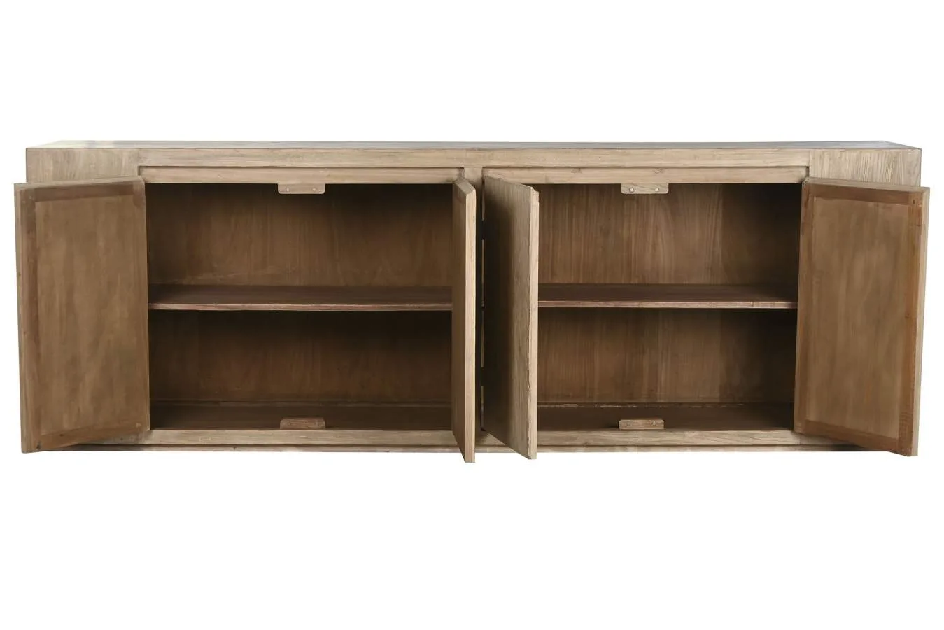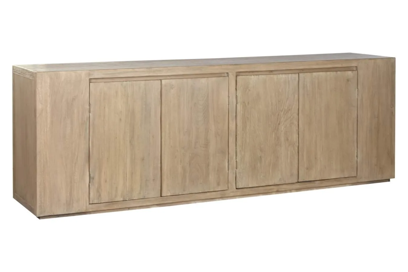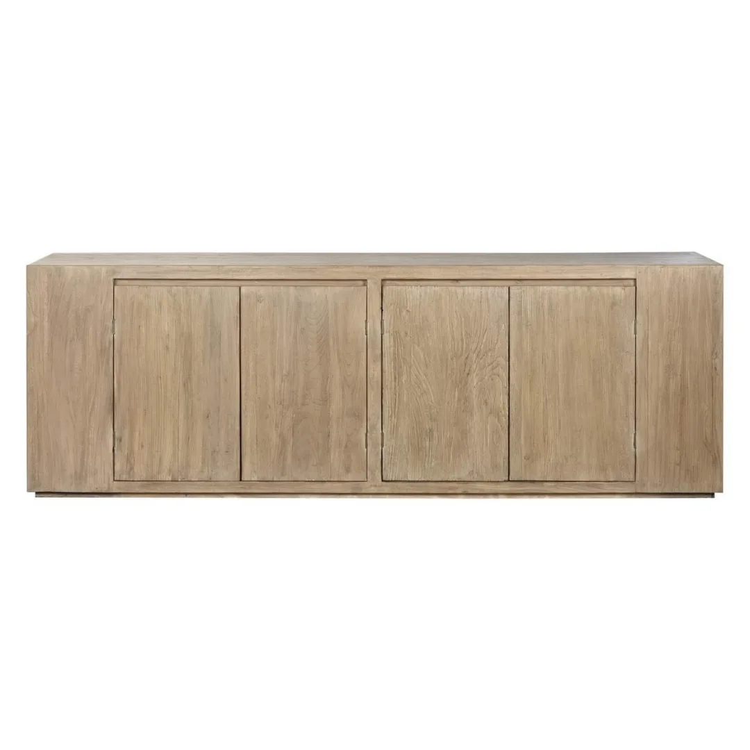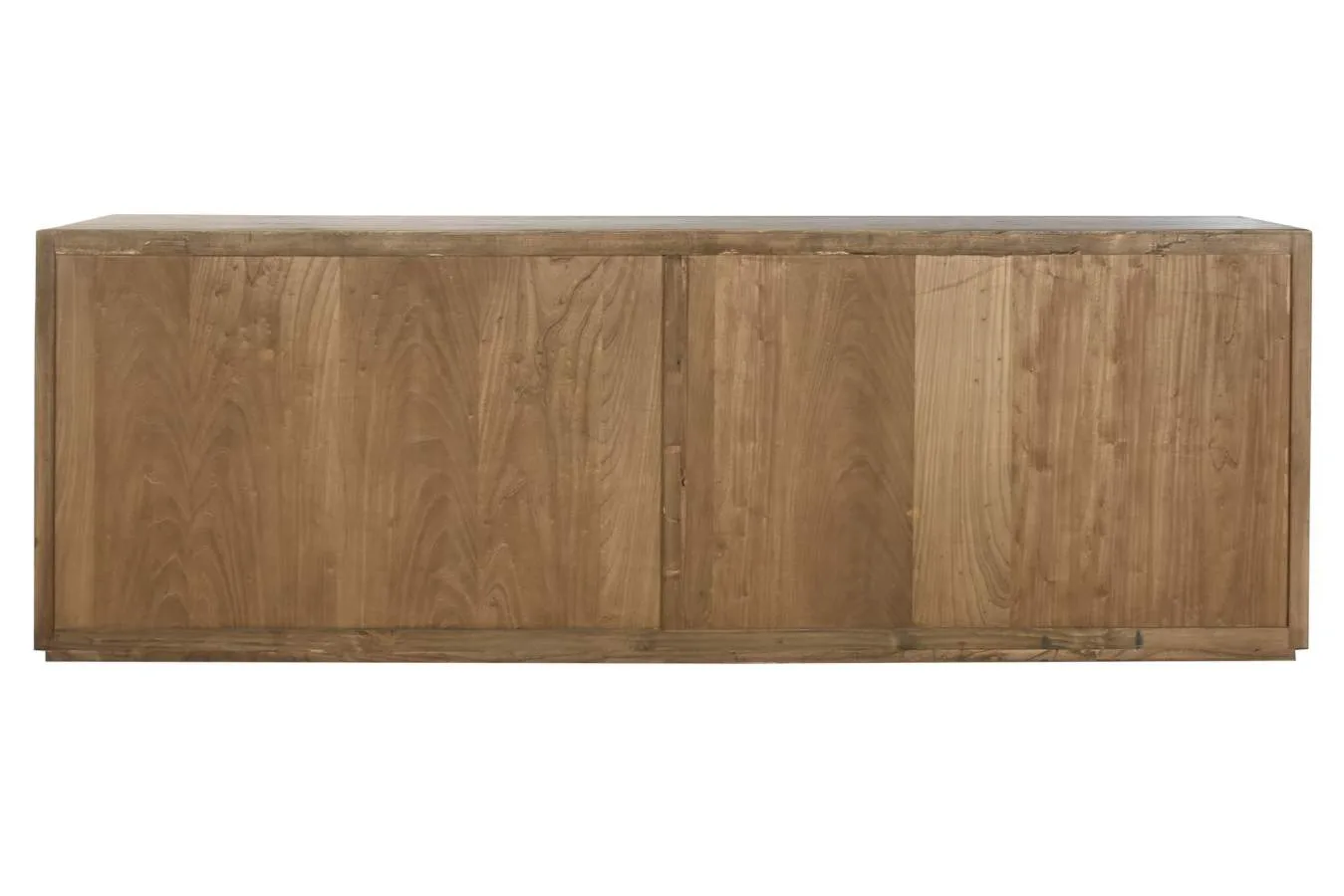 Aparador de olmo macizo de gran formato con 4 puertas, de diseño minimalista y líneas puras. La solidez y el veteado único del olmo macizo lo convierten en una pieza imponente y de gran valor decorativo para comedores y salones que buscan un aparador de madera maciza de calidad con un acabado natural y contemporáneo. Mide 240 cm de ancho, 50 cm de fondo y 83 cm de alto.