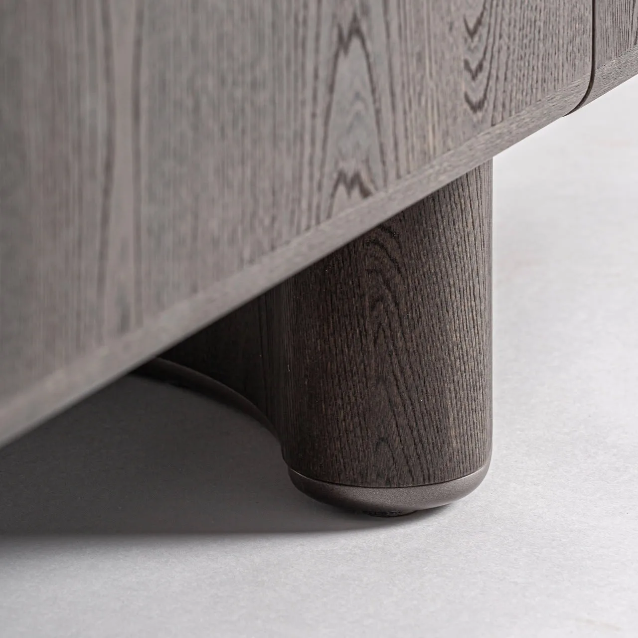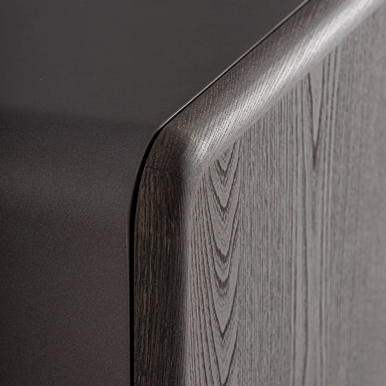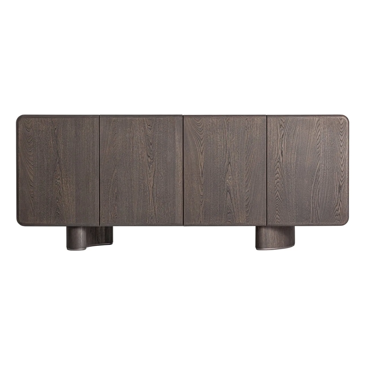 Aparador Pravia de estilo contemporáneo, fabricado en madera dm en color marrón, combinado con madera contrachapada en color marrón. Producto desmontable.