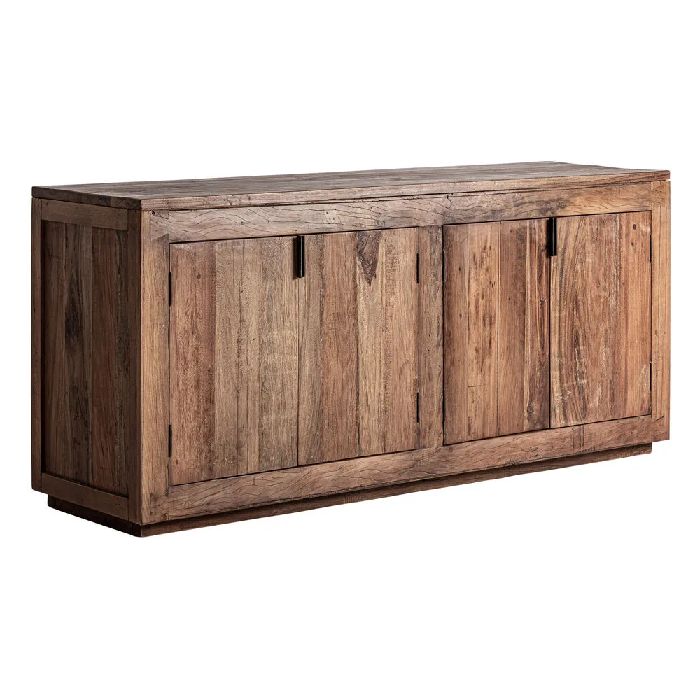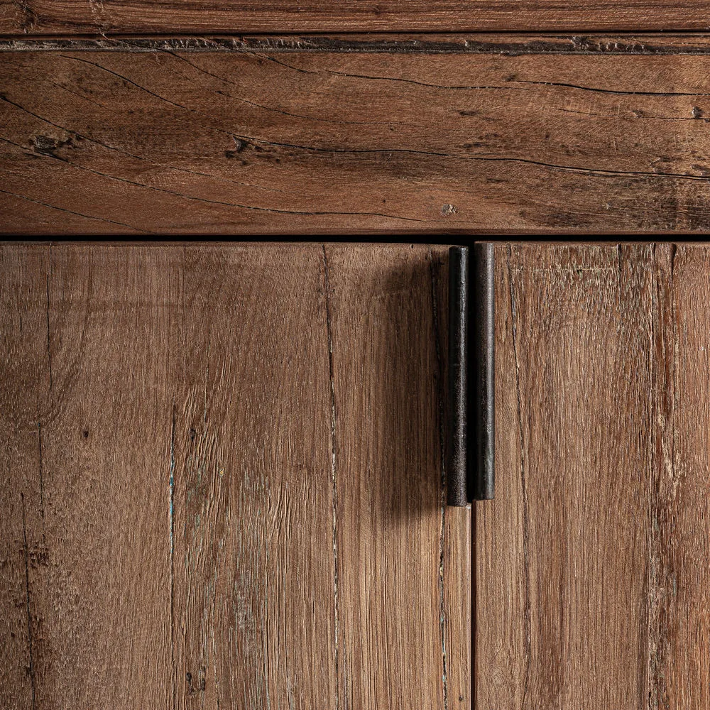 El aparador Selby destaca por su estética rústica y la calidez de la madera recuperada en tono marrón, combinada con la solidez del hierro negro. Su fabricación artesanal realza las irregularidades naturales del material, como nudos, grietas o variaciones de color, que aportan autenticidad y convierten cada unidad en una pieza única.