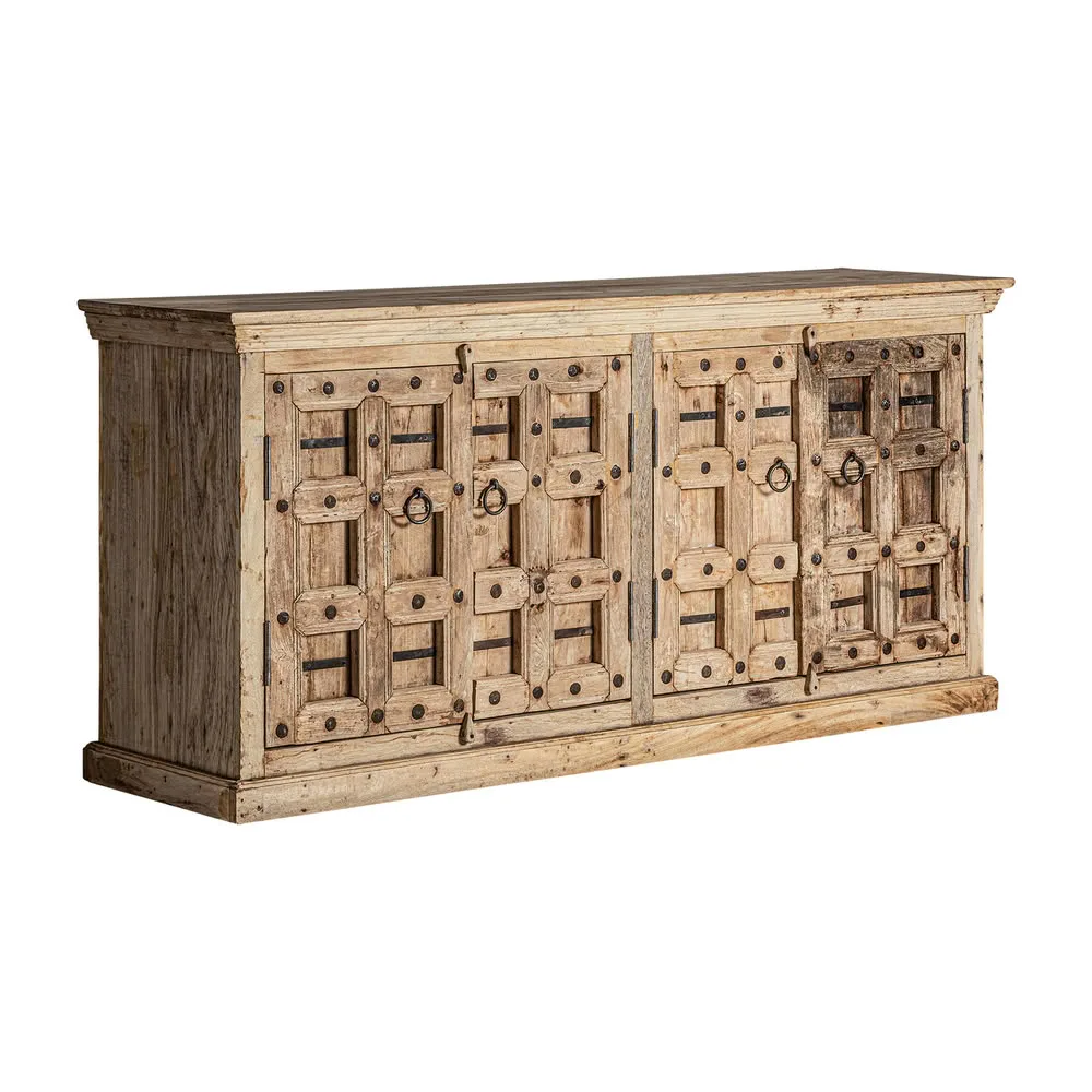 Aparador sirigere de estilo étnico fabricado en madera de mango en color marrón con acabado envejecido.
