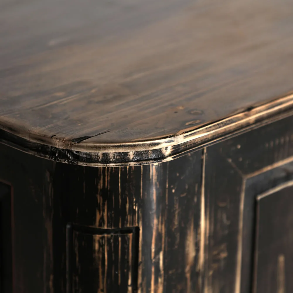 El aparador Svanhild está fabricado en madera de pino reciclado y destaca por su estética colonial y su acabado en tonos marrón, donde cada veta y cada imperfección cuentan una historia propia. Su diseño amplio y equilibrado ofrece una gran capacidad de almacenaje gracias a sus seis puertas y estante interior fijo, manteniendo una presencia robusta pero armoniosa. Las variaciones de tonalidad, nudos, grietas o marcas naturales se entienden como un valor añadido propio de su fabricación artesanal.