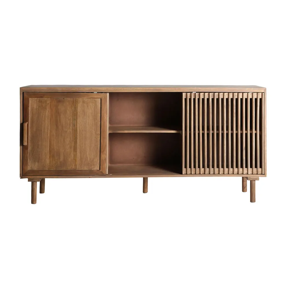 Añade un toque de estilo a tu hogar con este aparador de estilo nórdico, fabricado en madera de mango marrón, lo que le otorga una estética natural y cálida. Con estantes amplios, es perfecto para almacenar vajillas, mantelería u otros accesorios, manteniendo tu salón o comedor organizado. Su diseño limpio y minimalista lo hace ideal para ambientes modernos. Con unas medidas de 170x40x82 cm, combina funcionalidad con estilo, aportando un toque contemporáneo y nórdico a tu espacio.