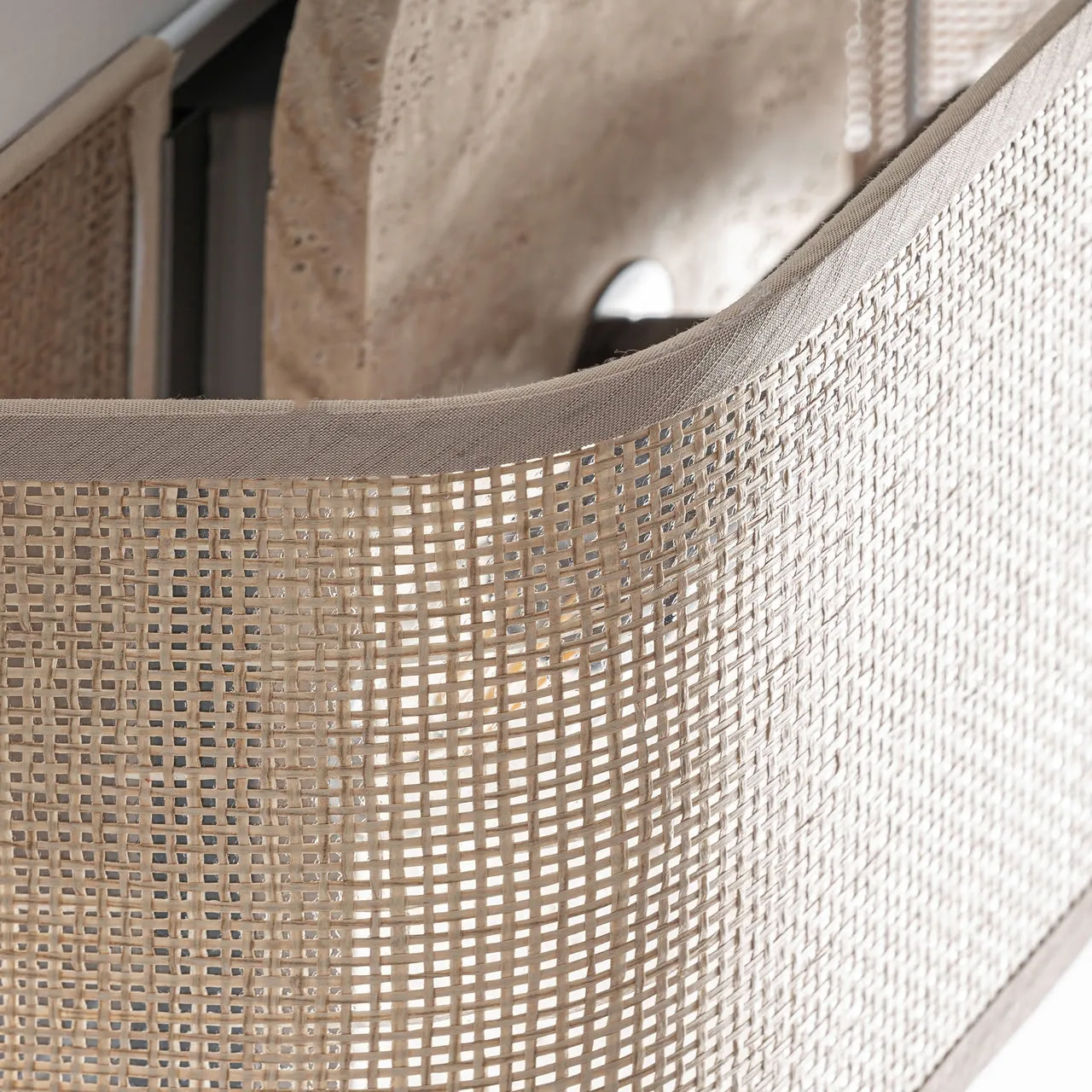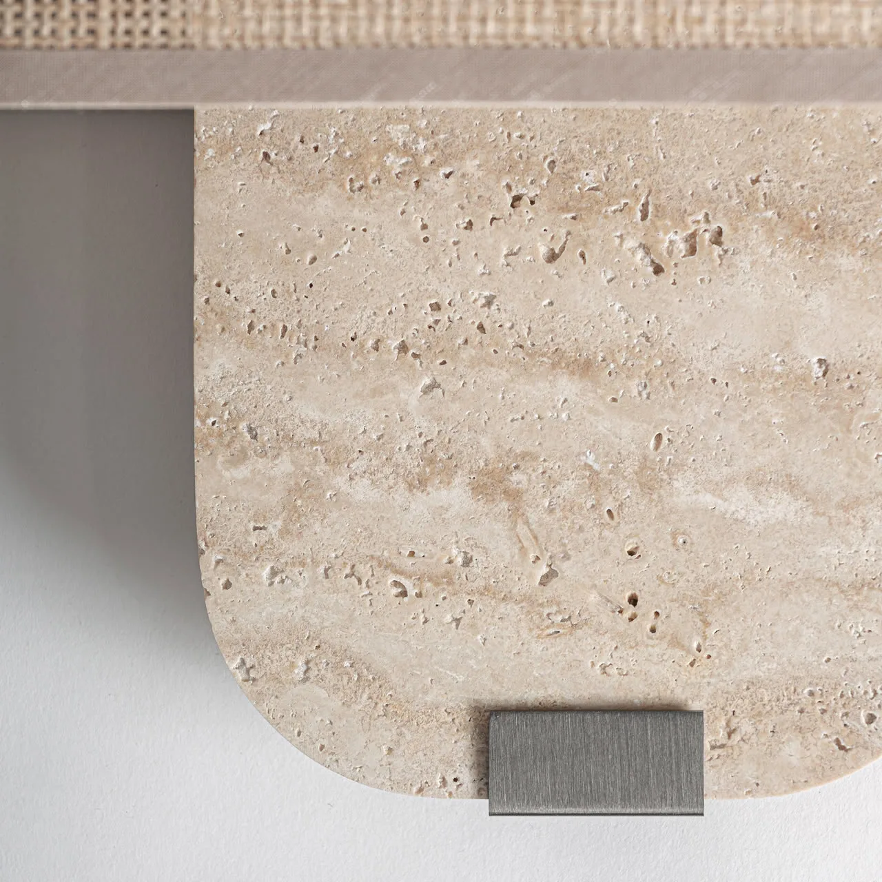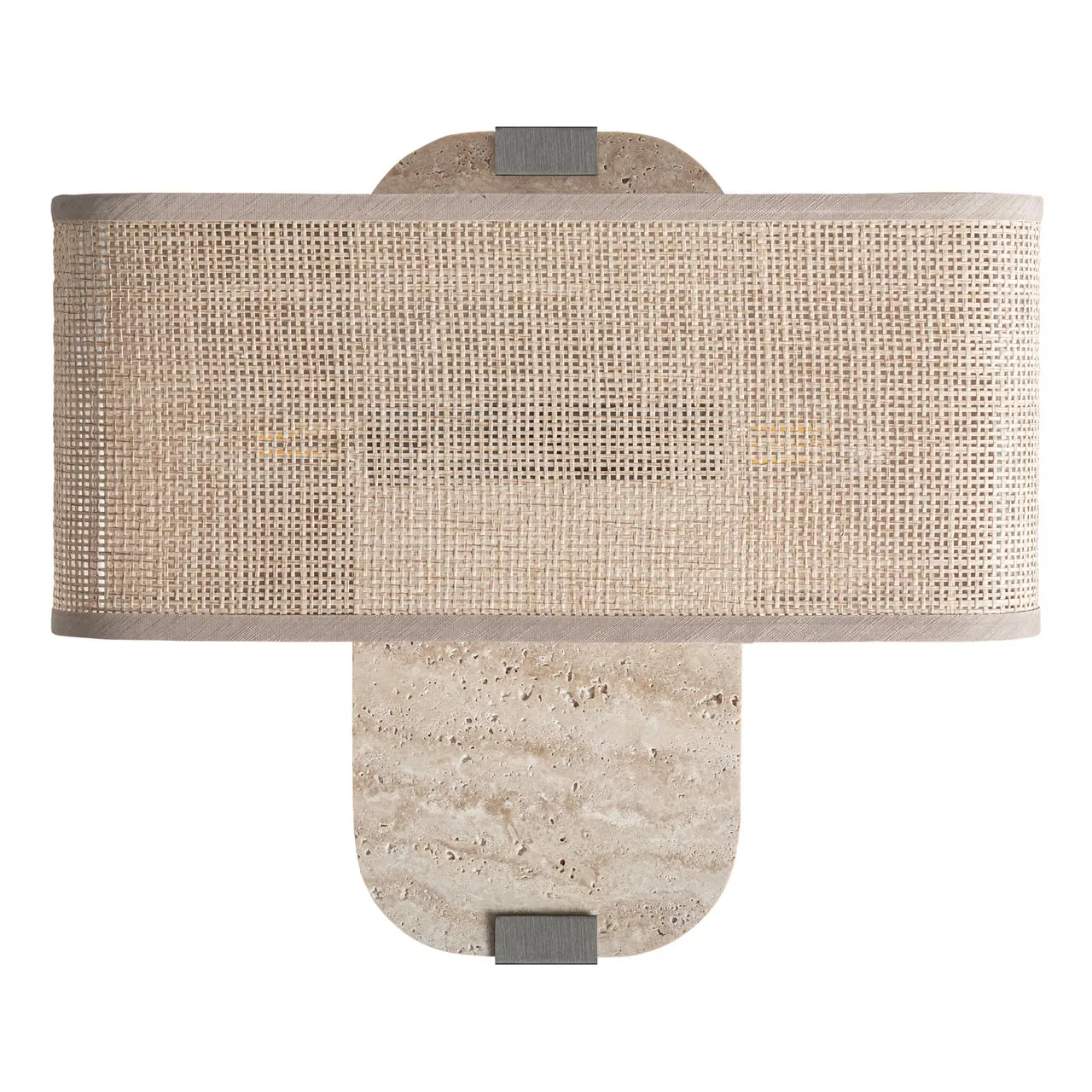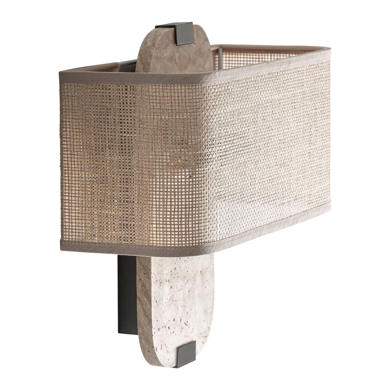 Aplique Absco de estilo contemporáneo, fabricado en mármol en color beige, combinado con hierro en color negro y poliéster en color beige. Producto desmontable.