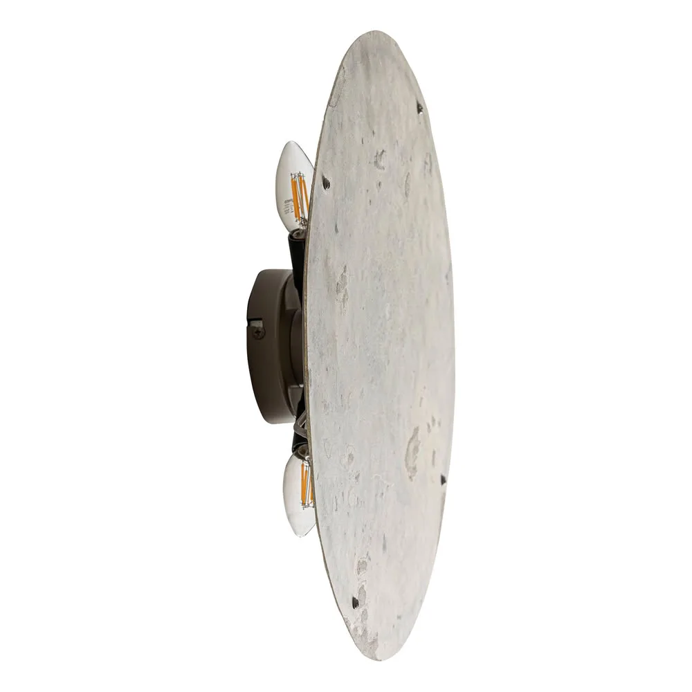 Aplique fabricado en piedra en color tonos neutros combinado con hierro.