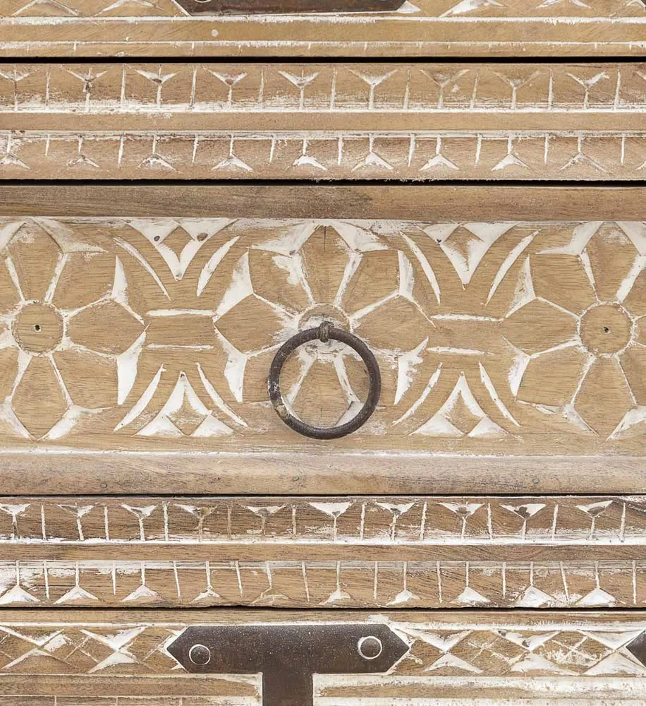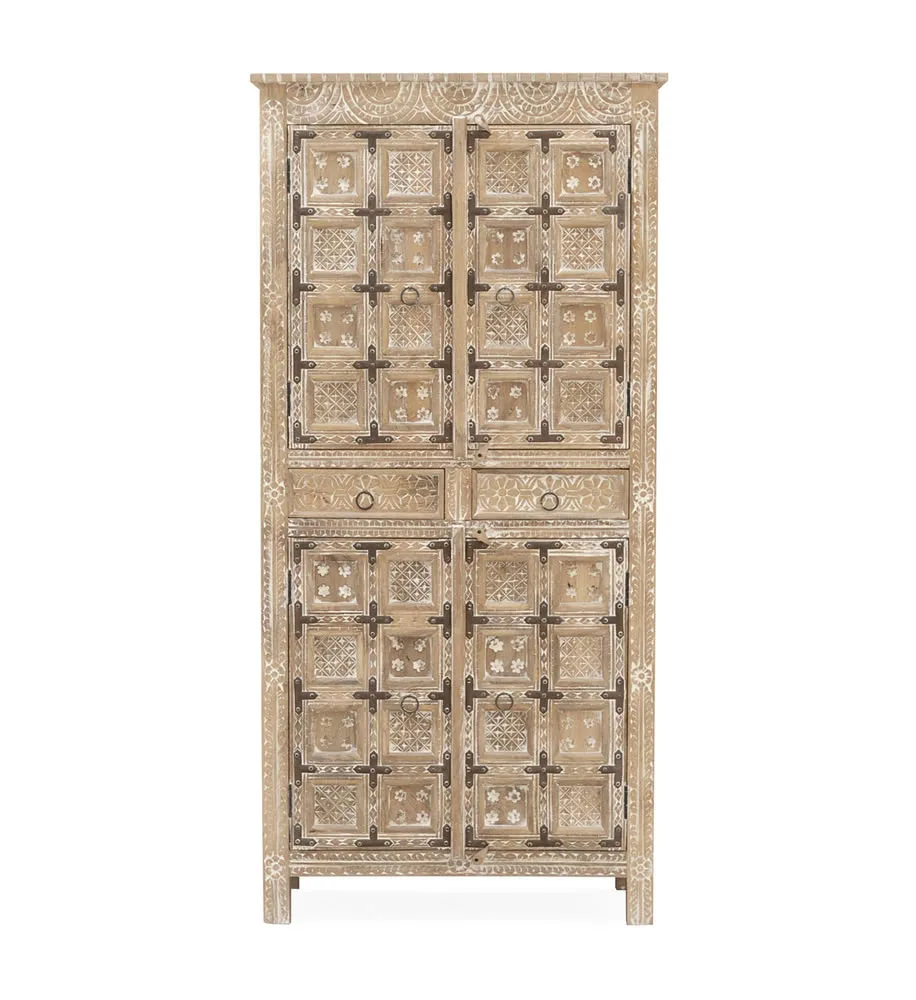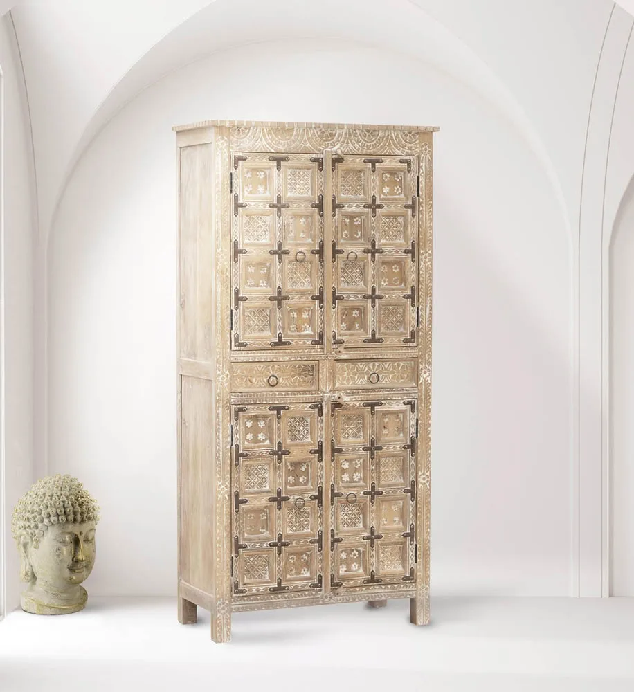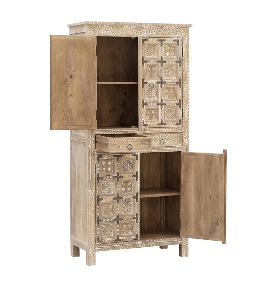 El Armario Alhambra de madera de mango 4 puertas y 2 cajones 90 x 45 x 192 cm es una pieza artesanal de gran capacidad, elaborada a mano en madera maciza de mango. Su diseño vertical combina funcionalidad y estética natural, incorporando puertas y cajones que facilitan una organización práctica y ordenada. Las vetas y tonalidades propias del mango aportan calidez y carácter, integrándose con elegancia en dormitorios o estancias de estilo natural, mediterráneo o contemporáneo.