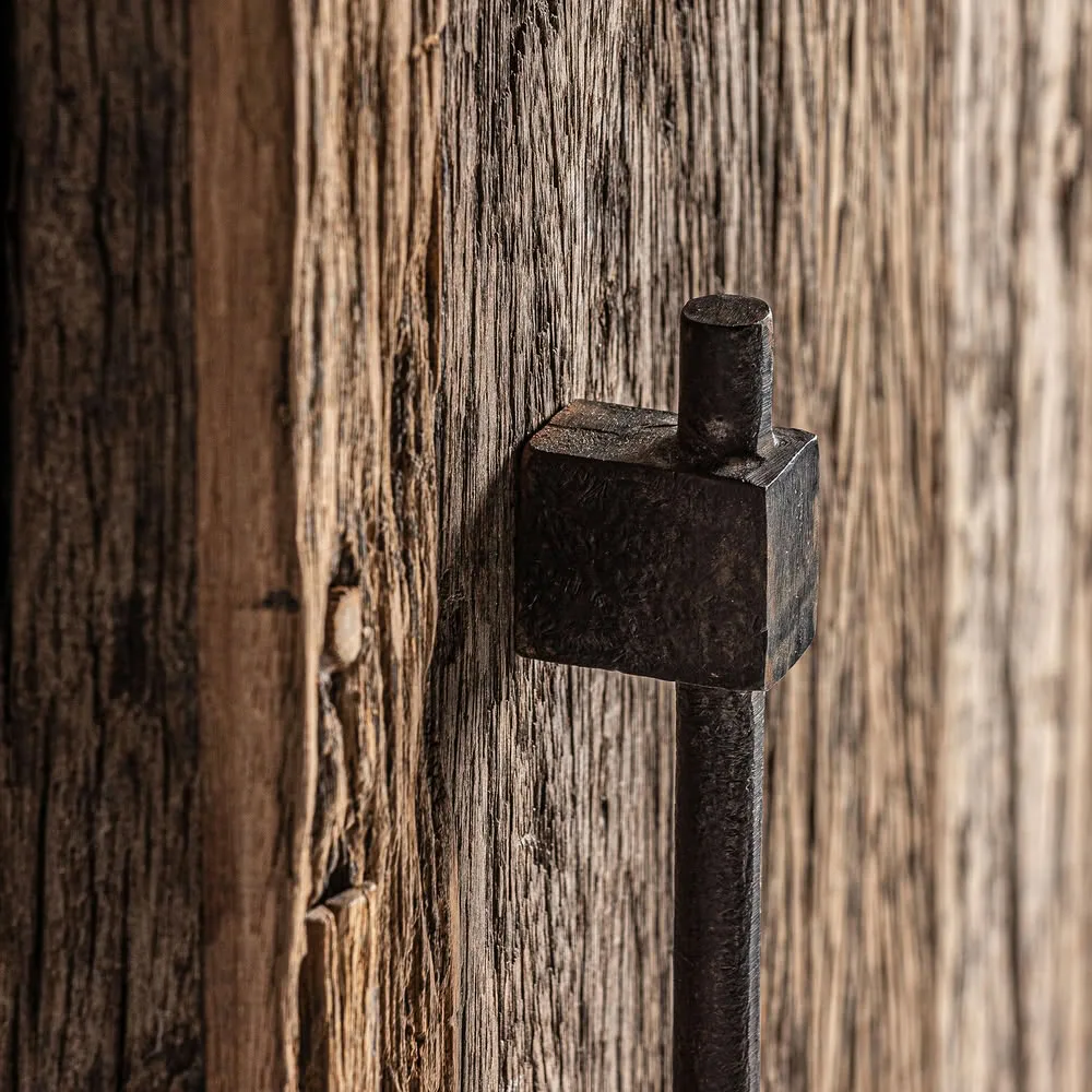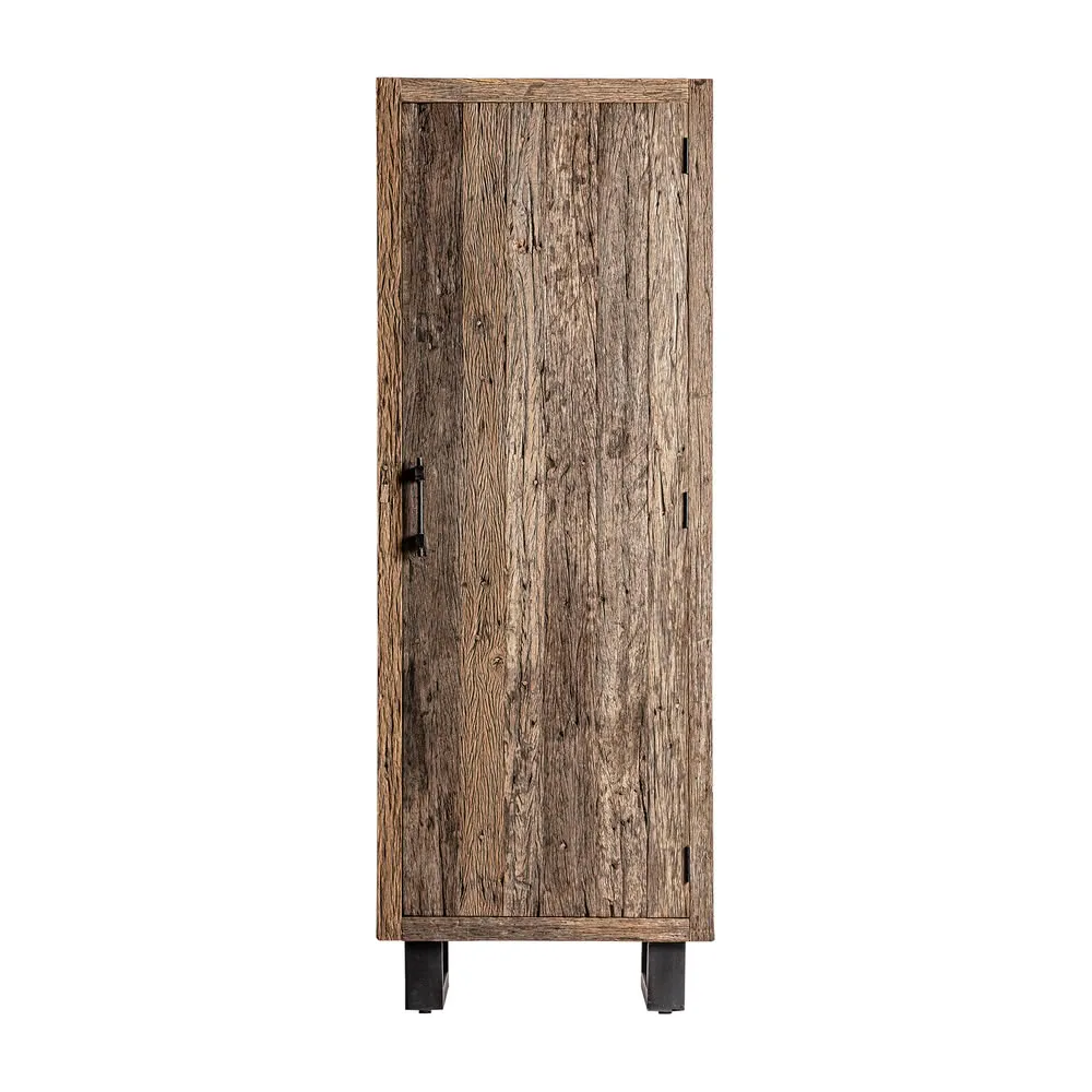 El armario Carrik destaca por su silueta alta y estilizada, elaborada en madera recuperada con detalles en hierro que refuerzan su carácter rústico y auténtico. Una pieza con presencia, ideal para aportar almacenaje vertical sin recargar el espacio, donde cada veta y marca natural habla de su origen artesanal y convierte al armario en un elemento único dentro del ambiente.