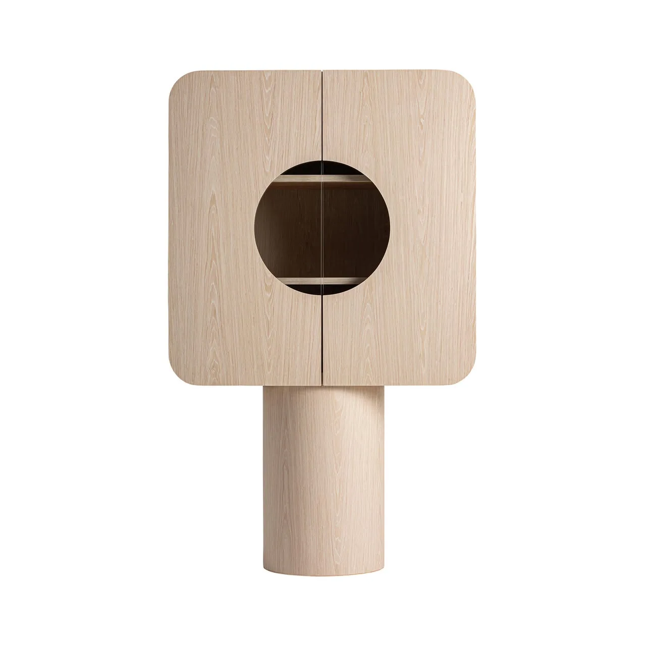 Armario Kharj de estilo art deco, fabricado en madera roble en color beige, combinado con cristal en color transparente. Producto desmontable.