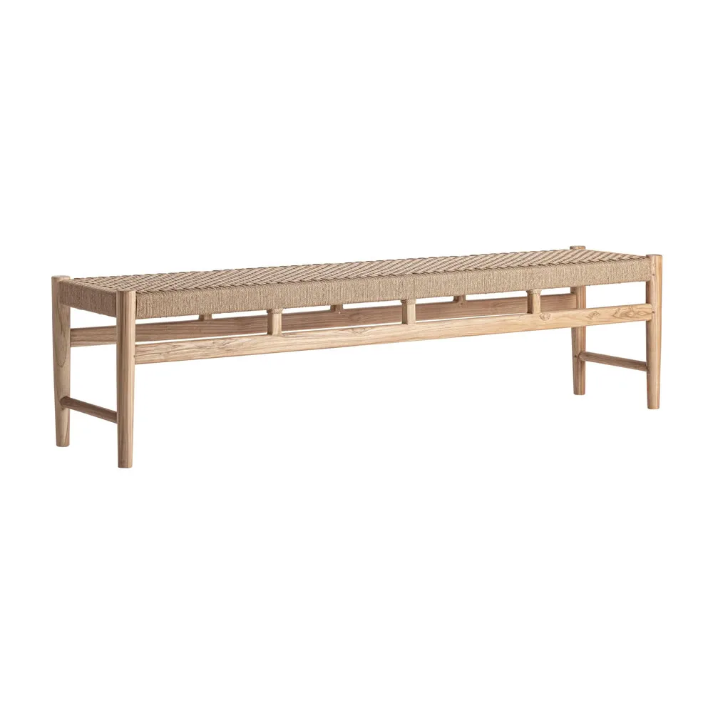 Banco Caen de estilo clásico fabricado en madera de teka en color marrón.