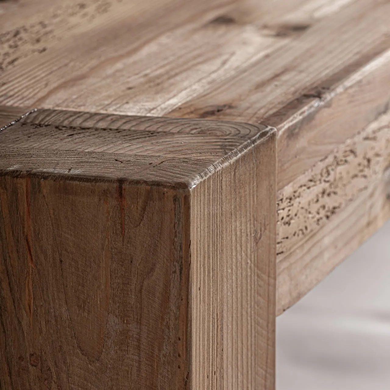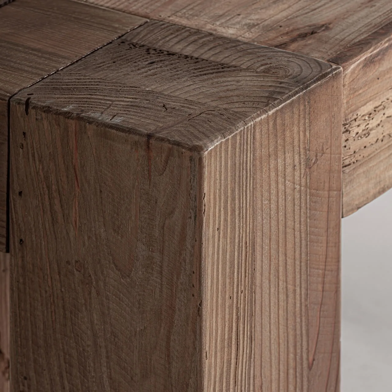 Banco Truel de estilo clásico fabricado en madera de pino reciclado en color marrón.