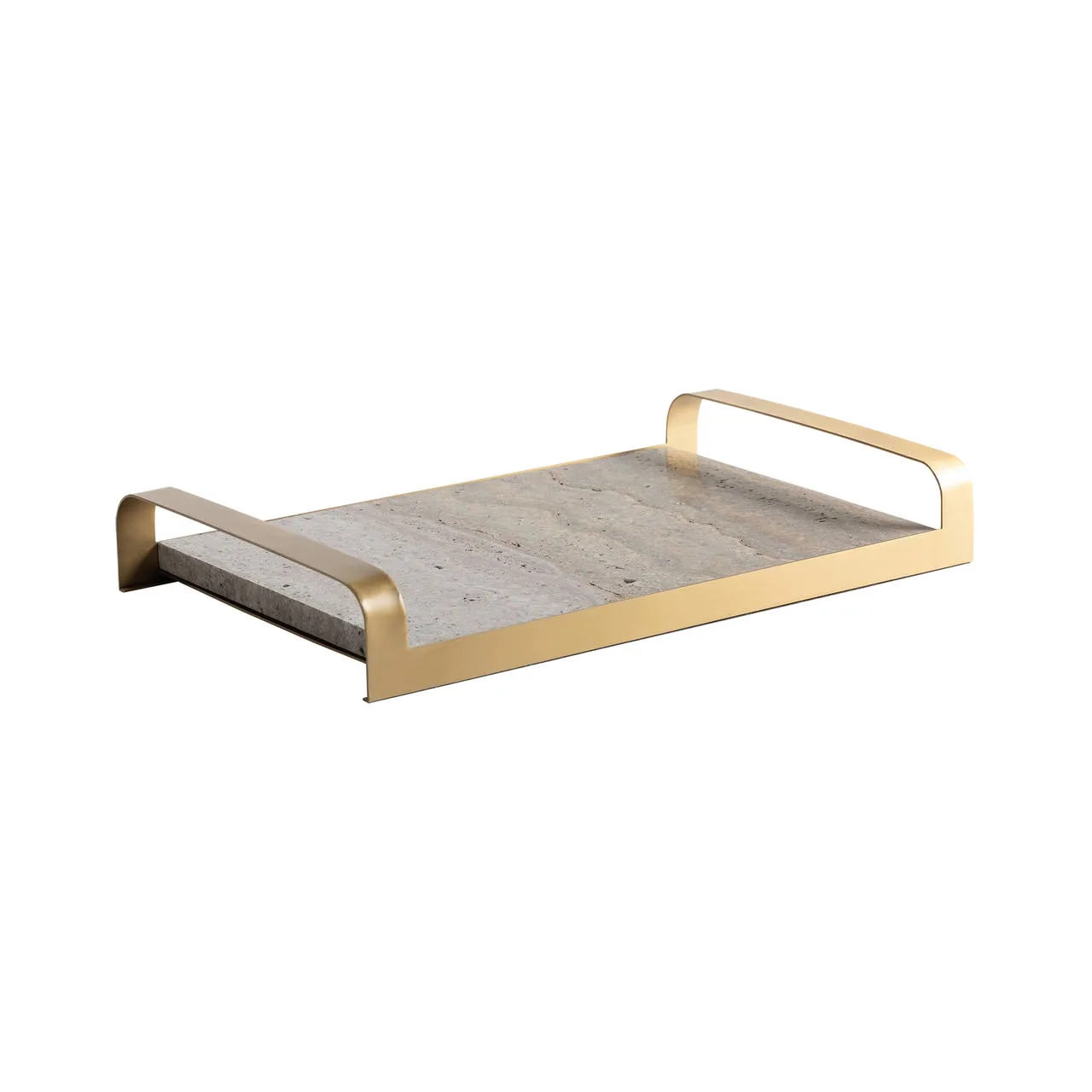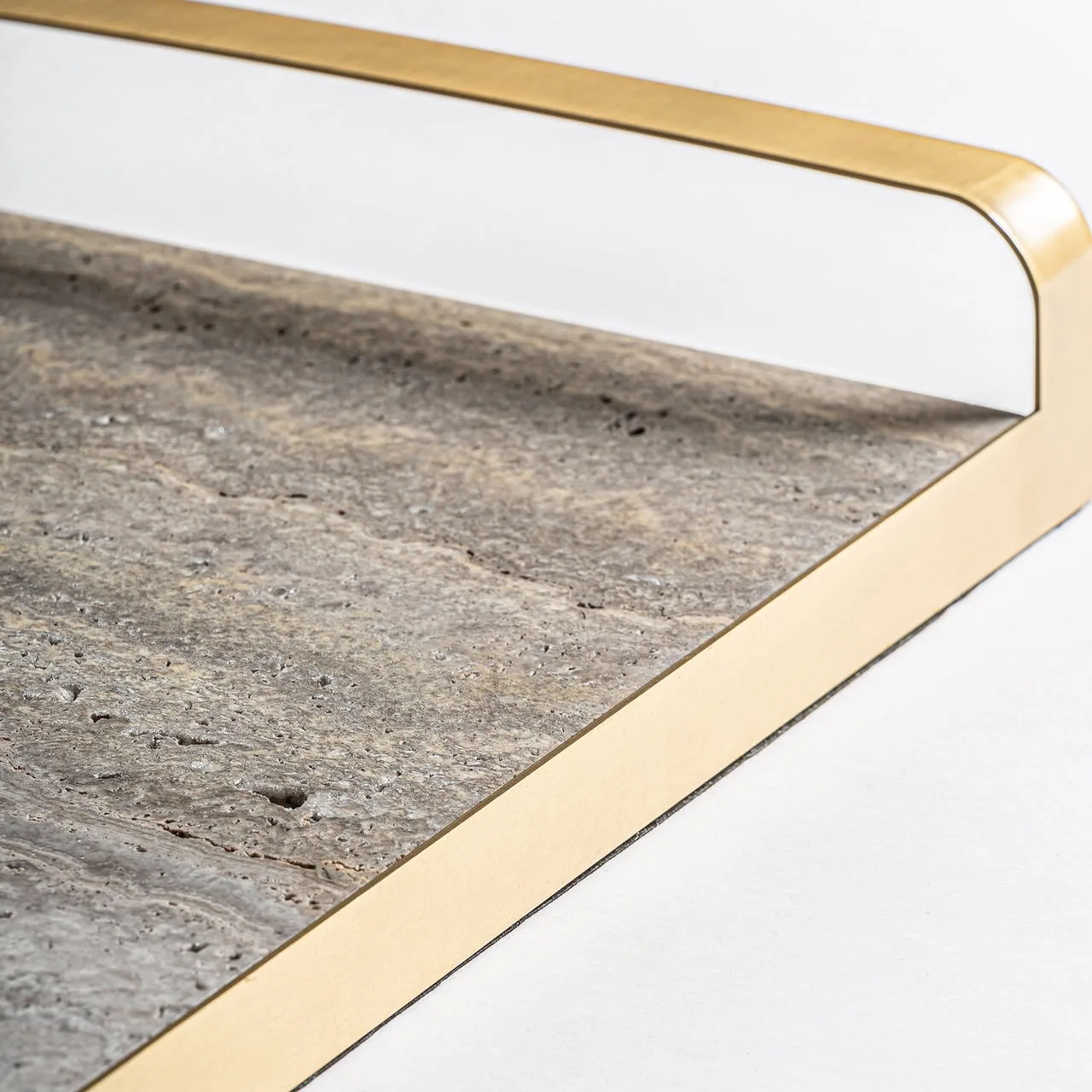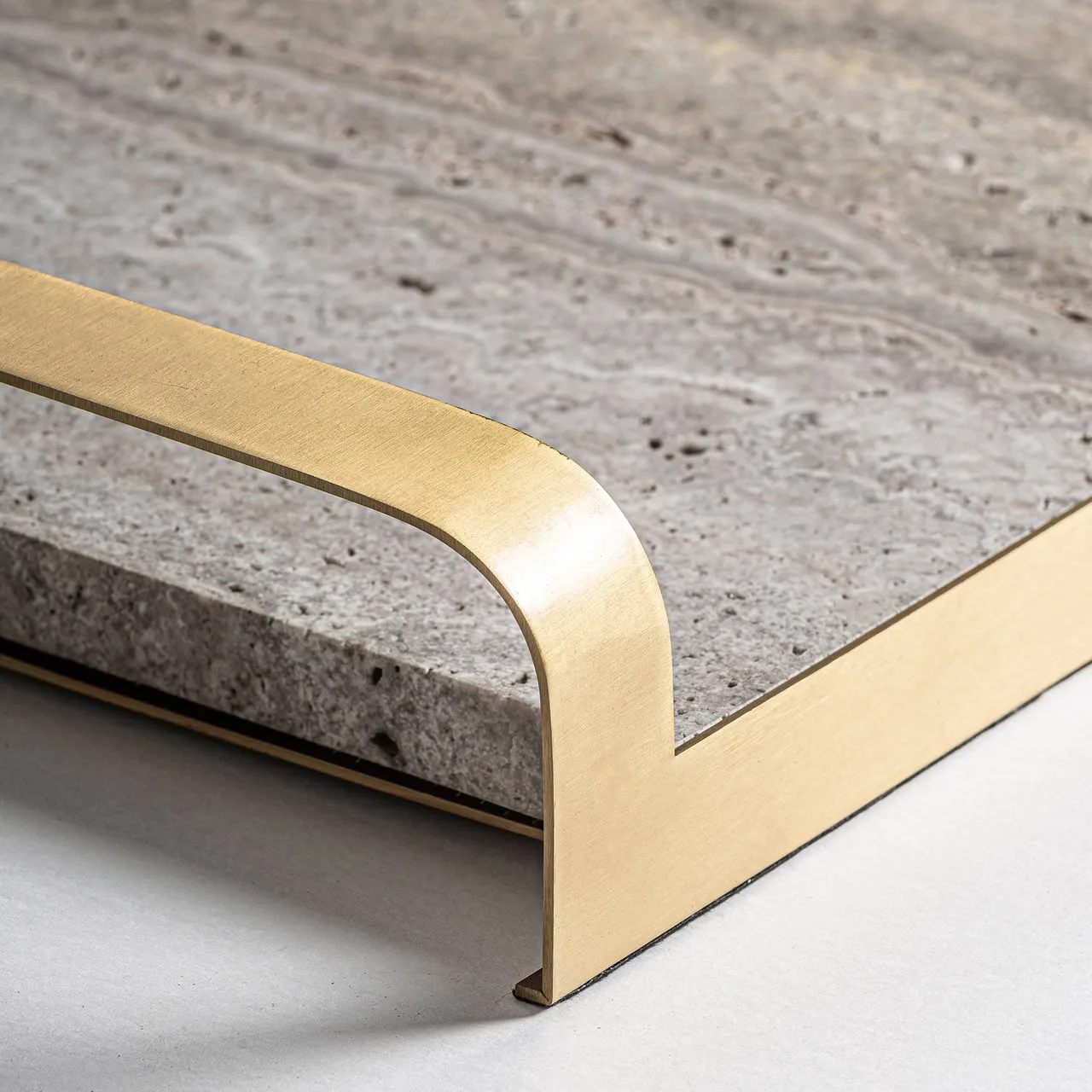 Bandeja Tetbury de estilo art deco, fabricado en bronce en color gris, combinado con mármol en color oro.