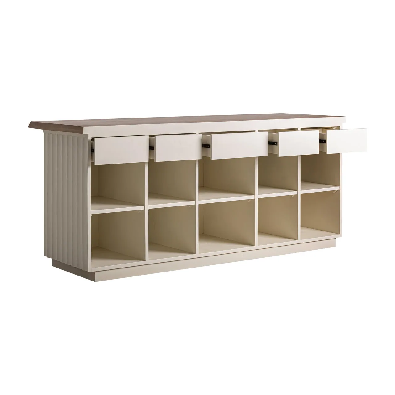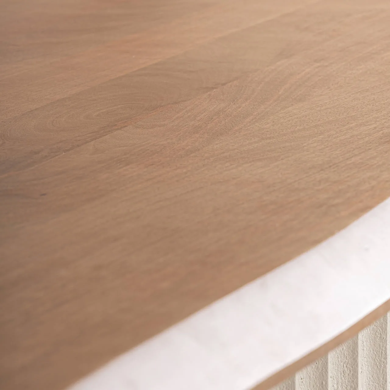 Barra de bar Guipy de estilo contemporáneo fabricado en madera de mango en color blanco combinado con madera de acacia en color marrón.