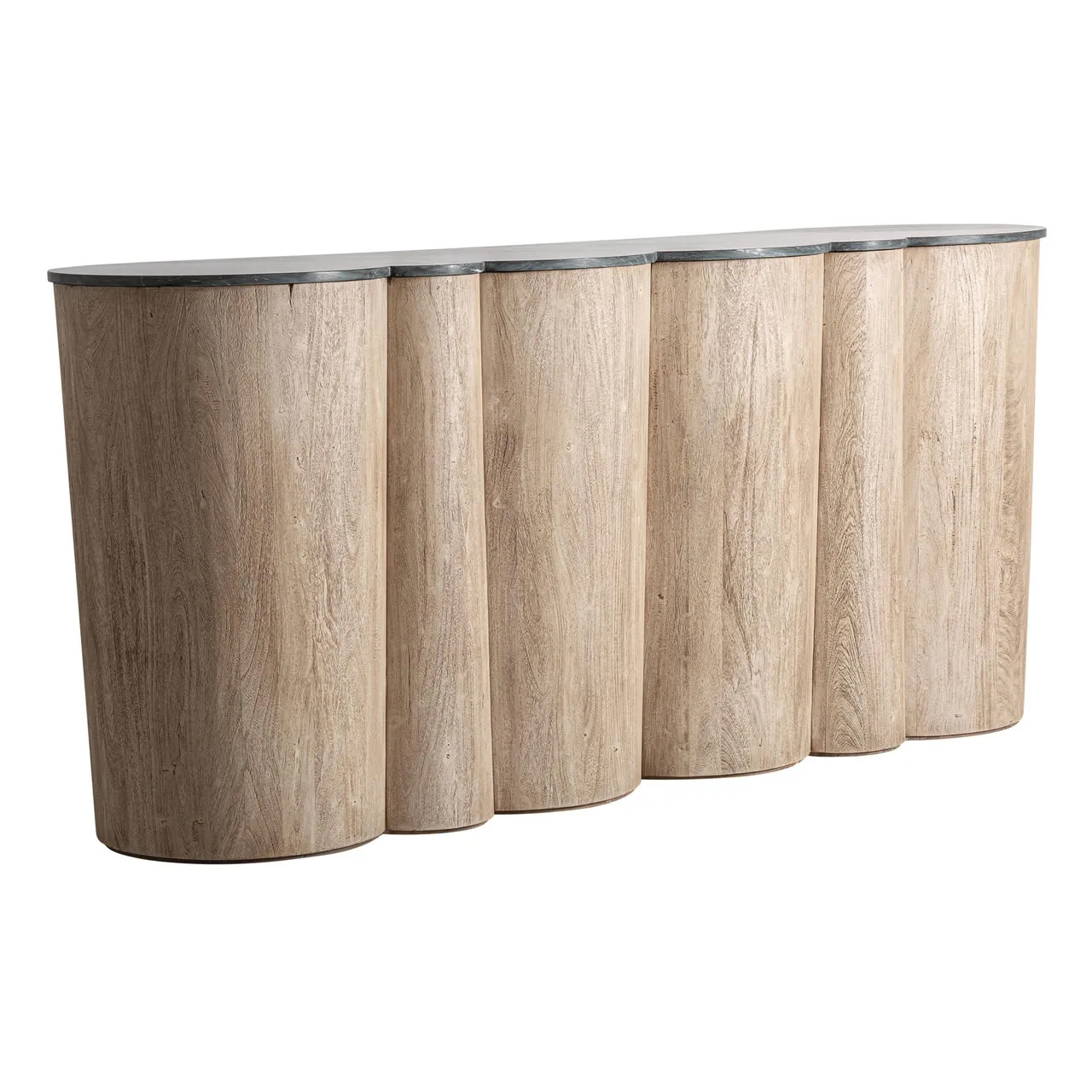 Barra de bar Kleit de estilo contemporáneo fabricado en madera de acacia en color marrón claro combinado con mármol mate en color negro.