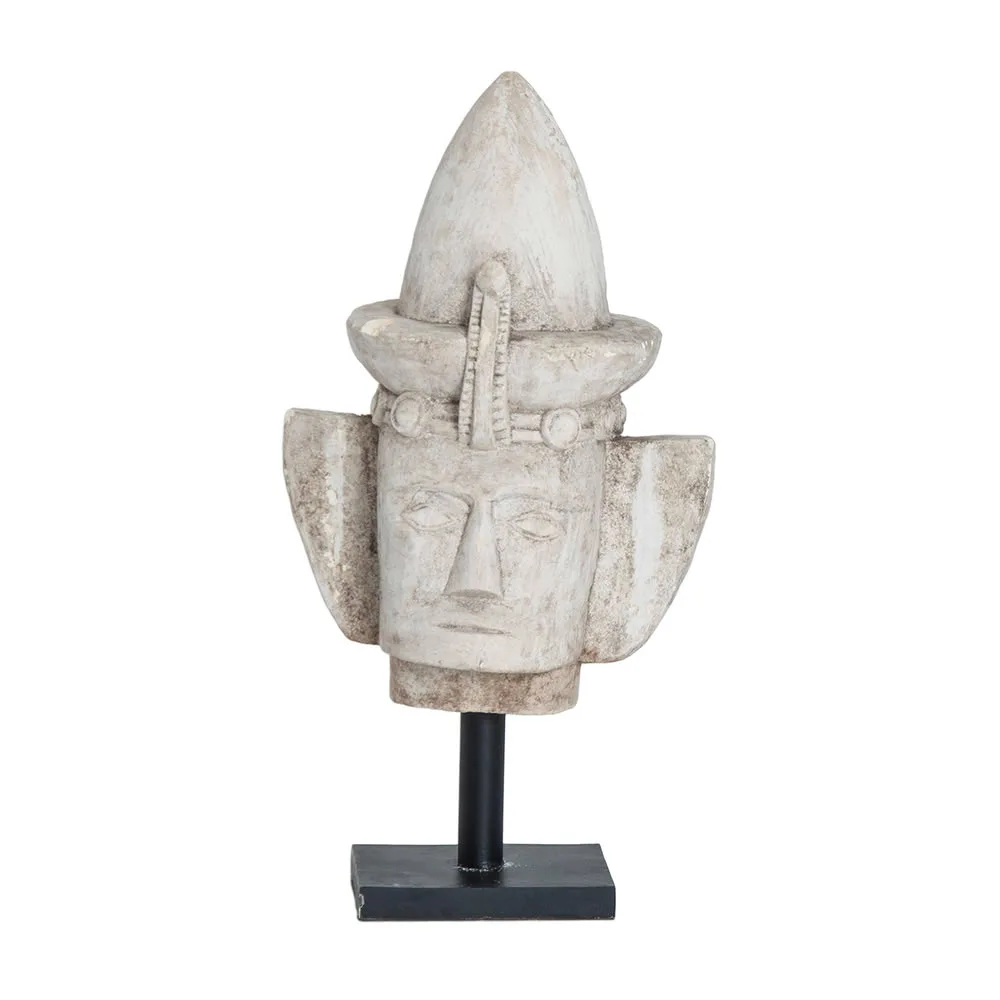 Busto Marcus de estilo étnico fabricado en piedra en color blanco roto combinado con hierro.