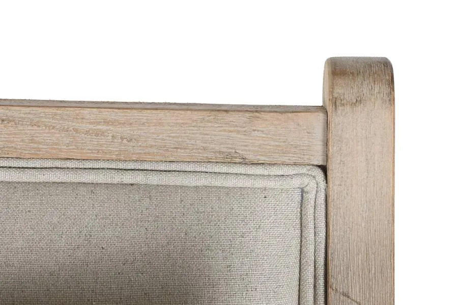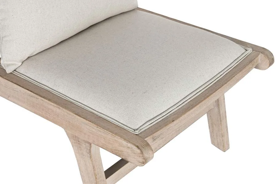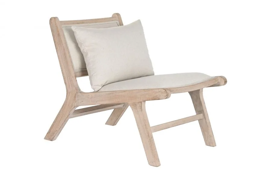 Butaca de madera de abeto en color natural con tapizado en poliéster beige, de diseño moderno y líneas limpias. Su generoso fondo y su asiento amplio invitan al descanso, siendo una pieza perfecta para salones y dormitorios que buscan una butaca de madera tapizada en tela con un acabado cálido y contemporáneo.