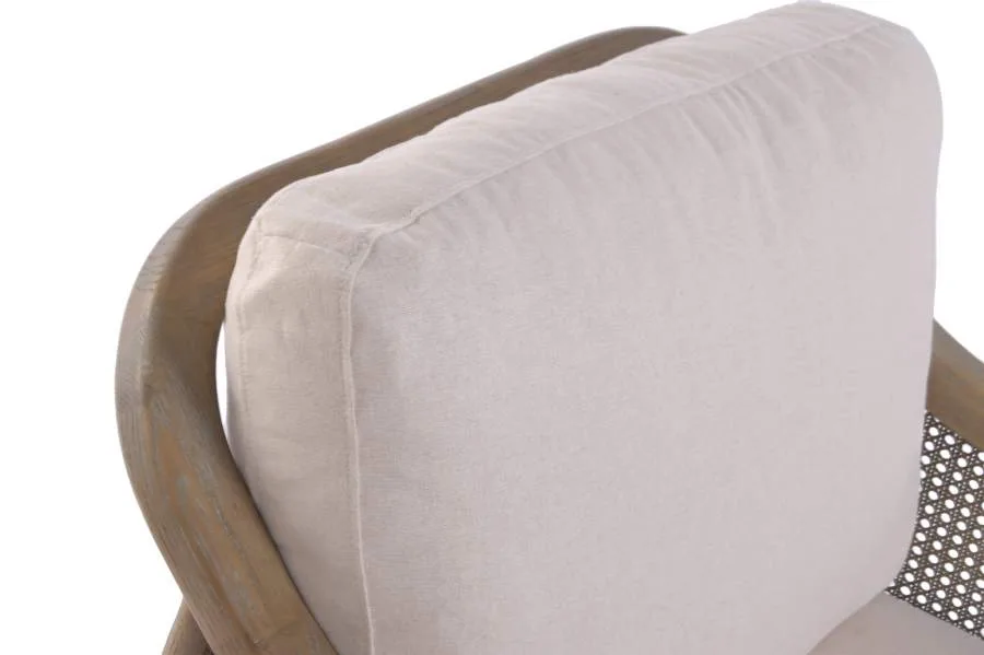 Butaca de diseño nórdico con estructura de madera de fresno y tapizado en lino. Combina solidez y elegancia natural, ideal para salones y espacios de inspiración costera. Su diseño compacto y sus materiales de calidad la convierten en una pieza versátil y duradera.