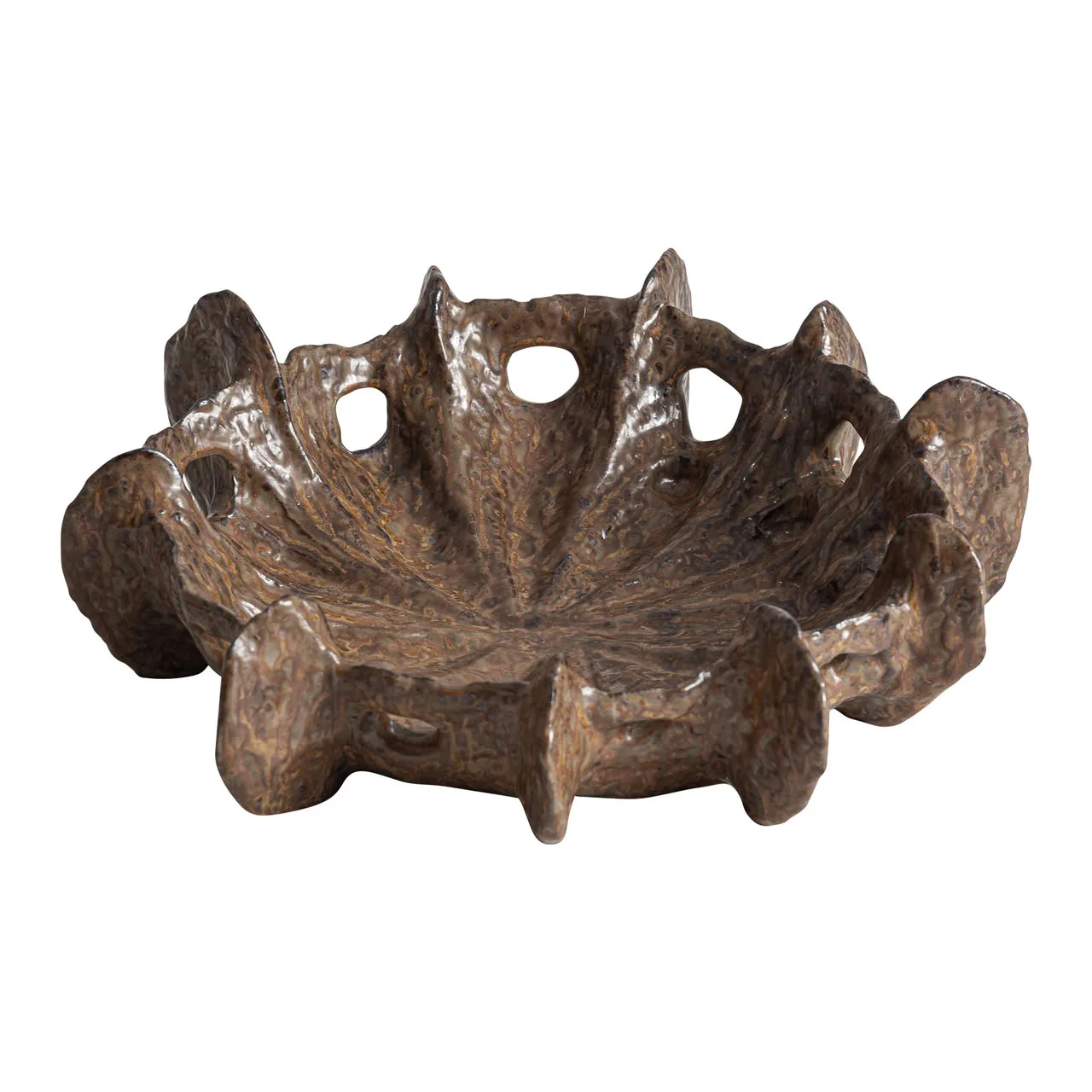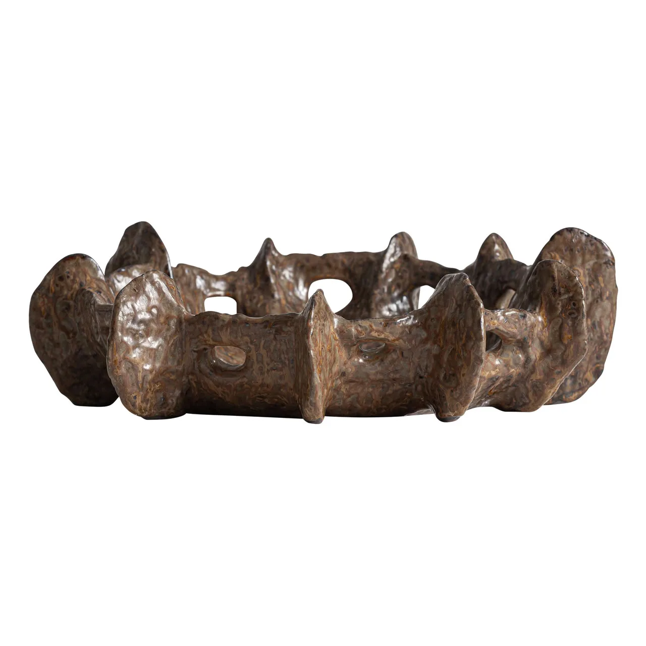 Centro de mesa Kyomi de estilo contemporáneo, fabricado en cerámica en color marrón.