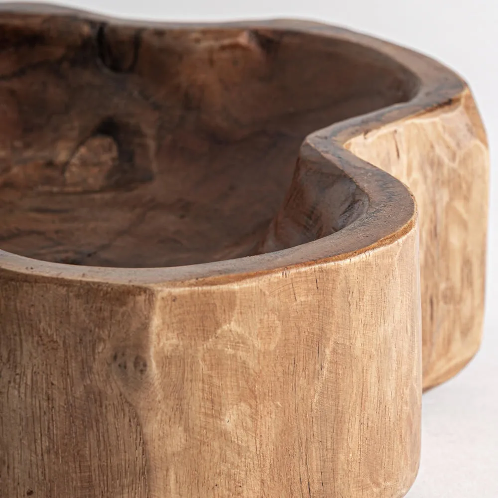 Centro de mesa fabricado artesanalmente en madera de teca en color marrón. Dale a tu mesa ese toque especial y distinto con nuestro centro de mesa.