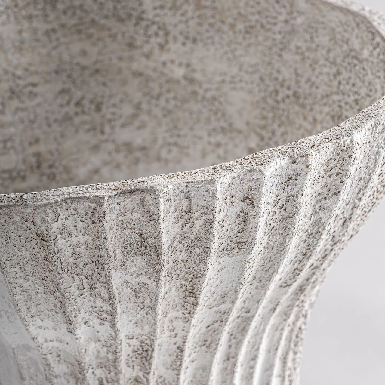 Centro de mesa Lumo de estilo contemporáneo, fabricado en terracota en color blanco roto con acabado texturizado.