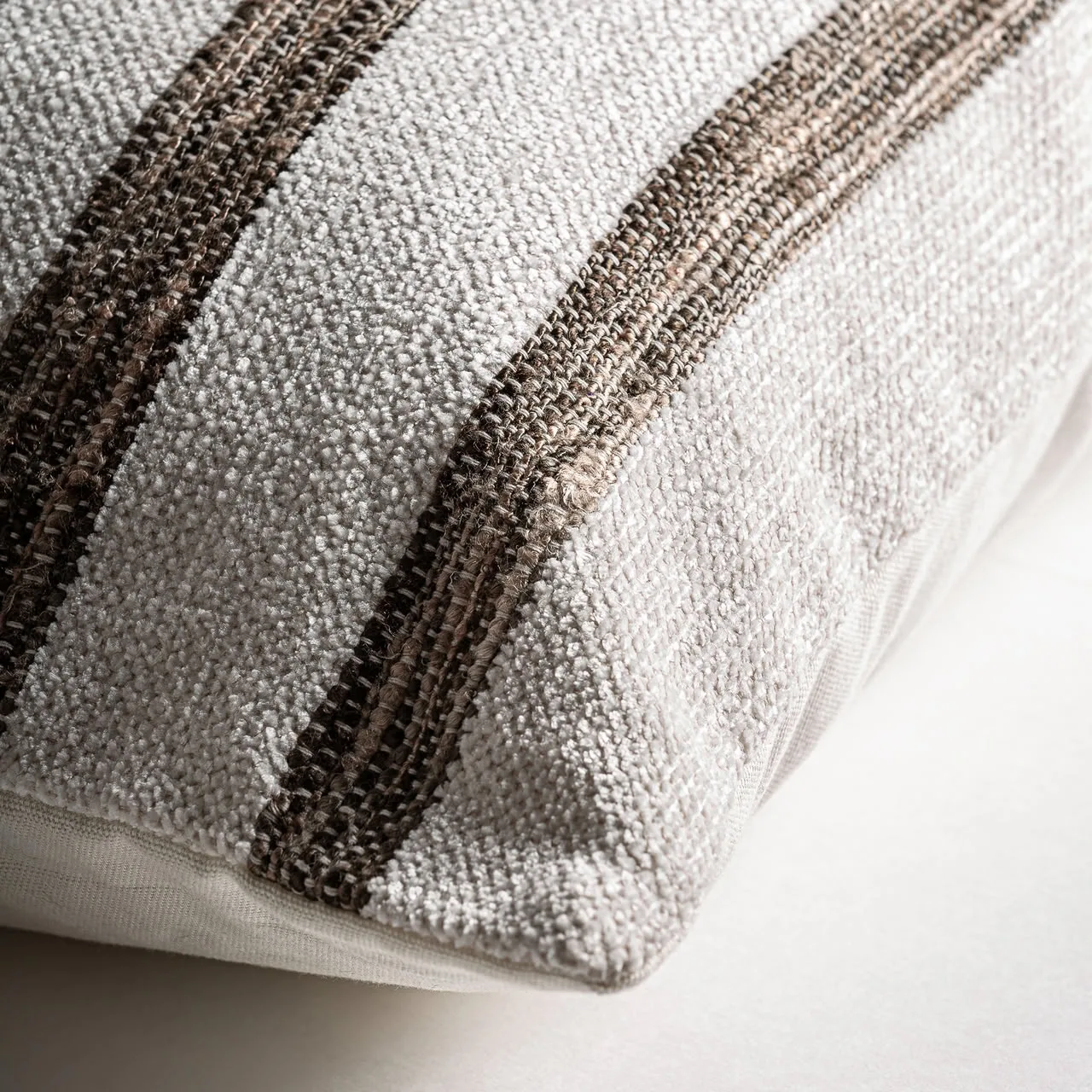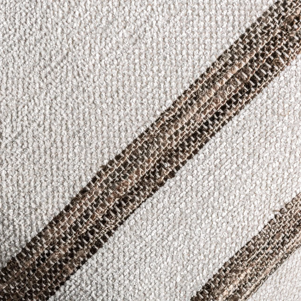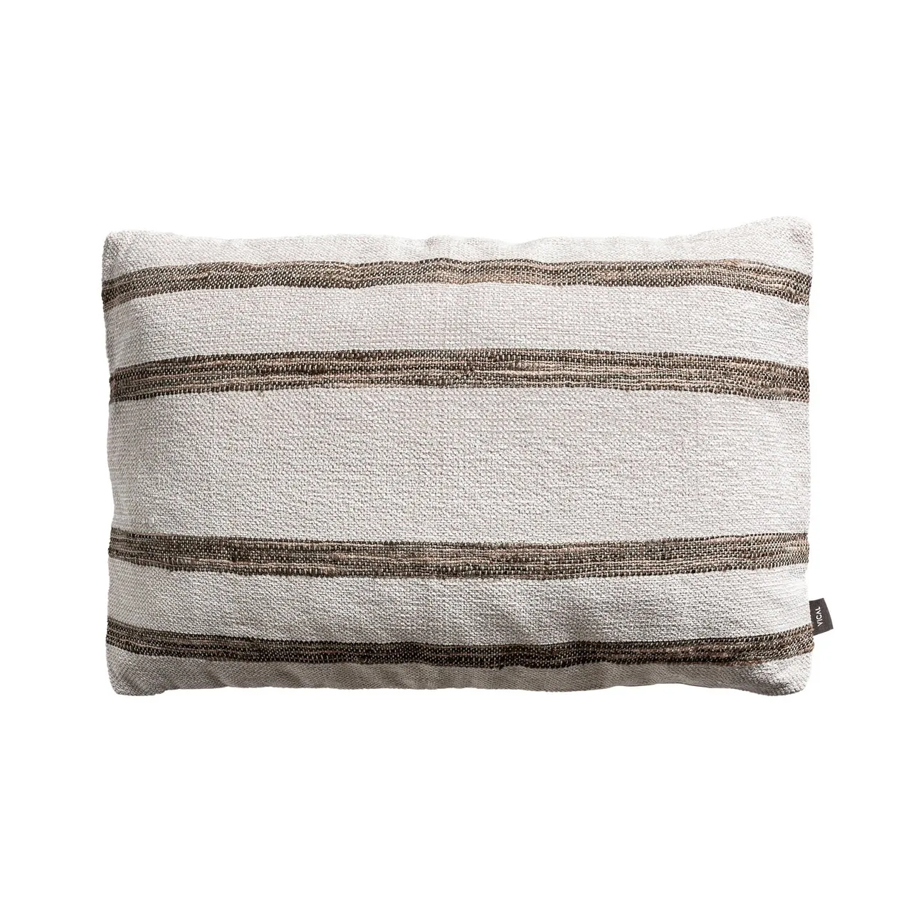 Un guiño a lo mediterráneo. Boris combina blanco y marrón con un diseño de rayas que evoca casas de campo y tejidos tradicionales. Fabricado en algodón con guata sintética. *Relleno incluido.