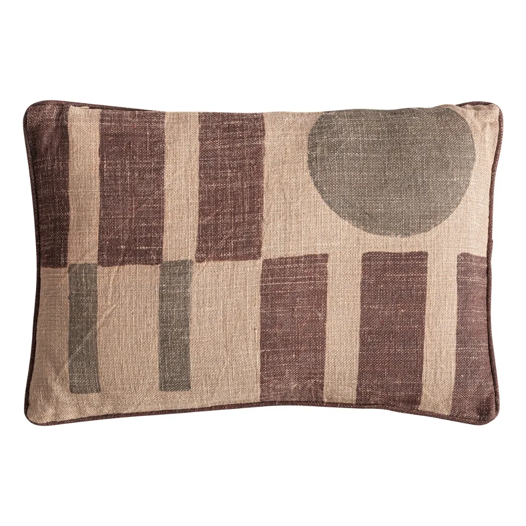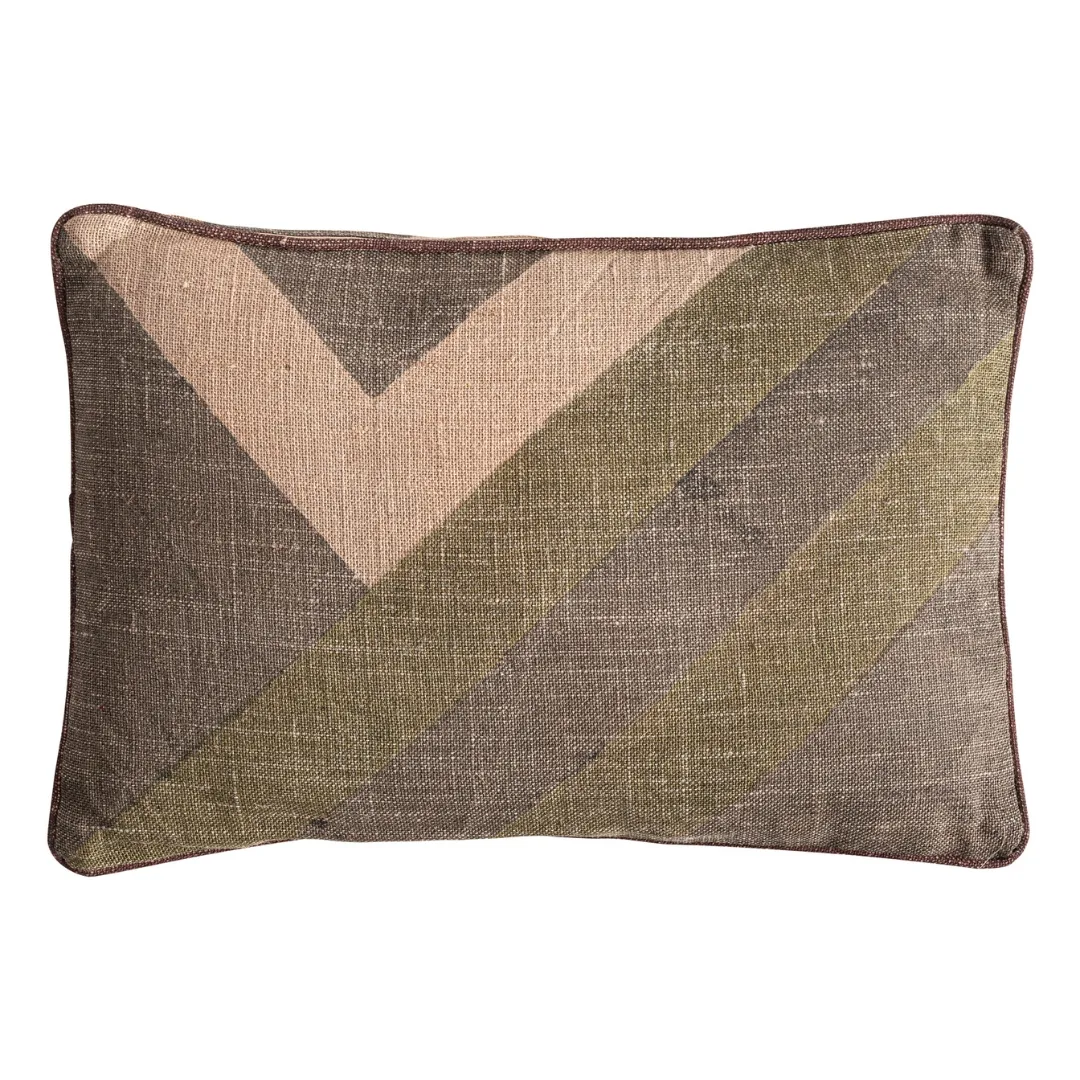 Cojín Anzaty de estilo clásico fabricado en yute en color beige combinado con fibra natural en color tonos en verde. Producto desenfundable. Incluye relleno.