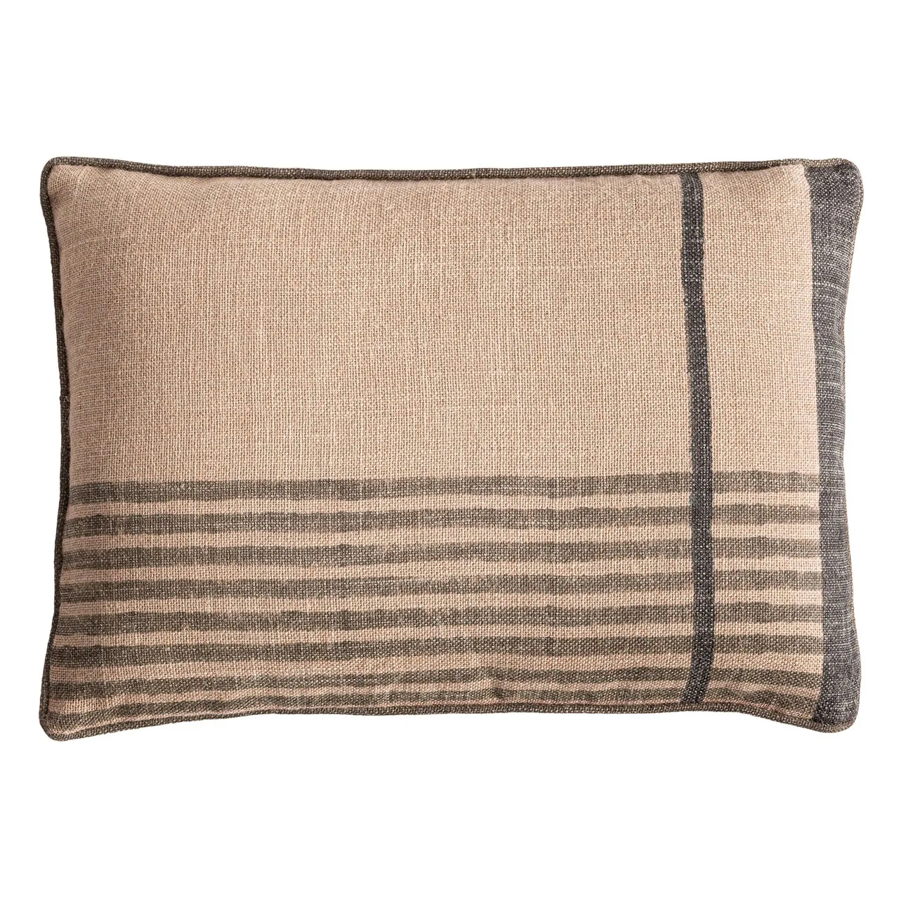 El Cojín Nagore de VICAL aporta un aire clásico renovado gracias a su dibujo lineal en beige y marrón. Fabricado en yute y fibra natural, es una pieza resistente, cálida y funcional, ideal para hogares que buscan un toque orgánico con carácter. *Incluye relleno.