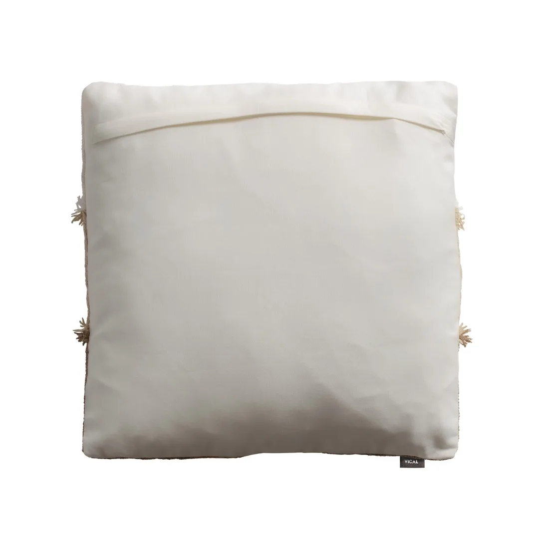 Cojín Euken de estilo clásico fabricado en algodón en color tonos en marrón combinado con terciopelo en color blanco con acabado liso y guata sintética. Producto desenfundable. Incluye relleno.