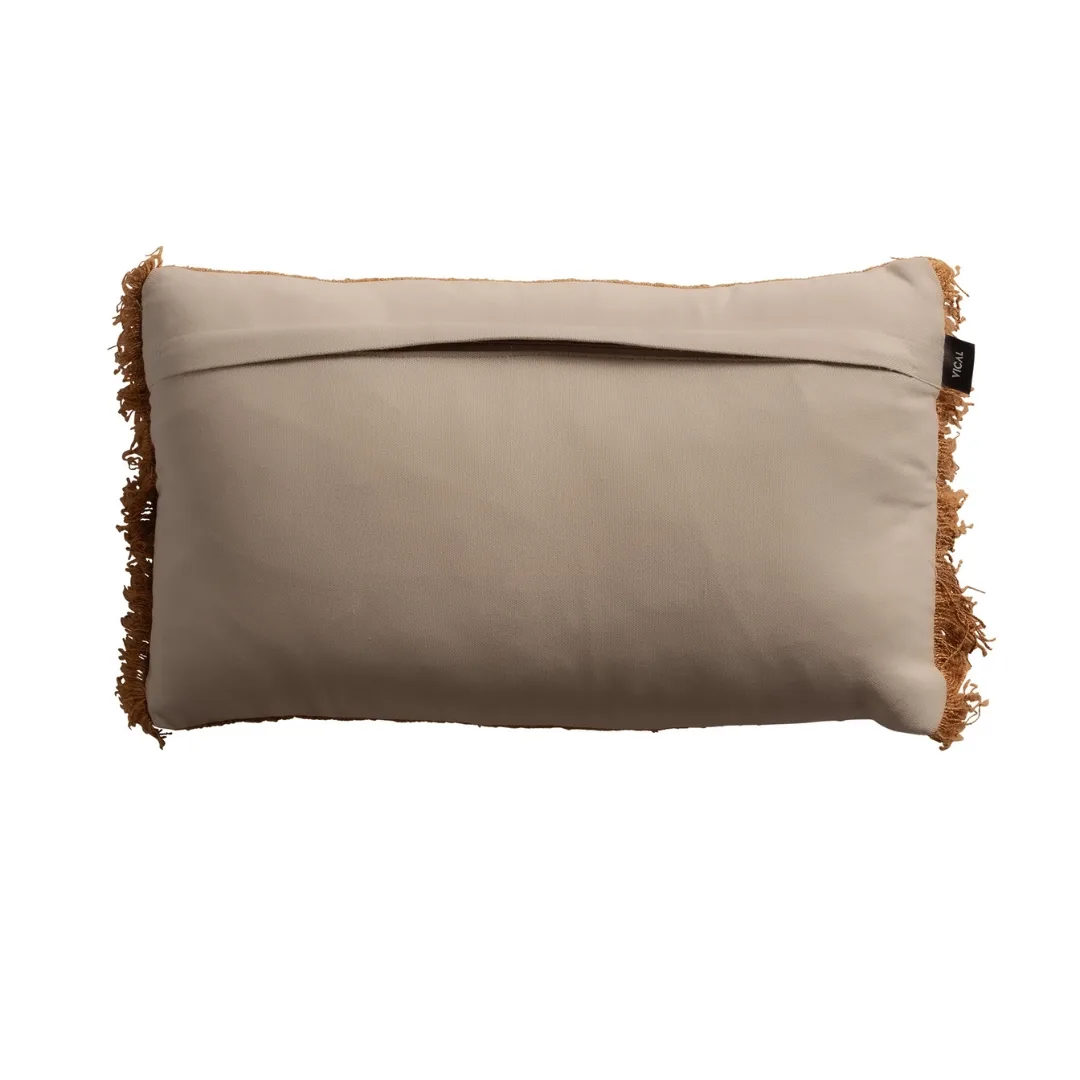 Cojín Gorane de estilo clásico fabricado en algodón en color beige combinado con lino en color marrón y guata sintética. Producto desenfundable. Incluye relleno.