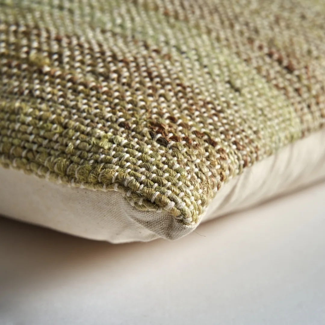 Cojín Keith de estilo vintage fabricado en yute en color marrón combinado con poliéster en color beige. Producto desenfundable.
