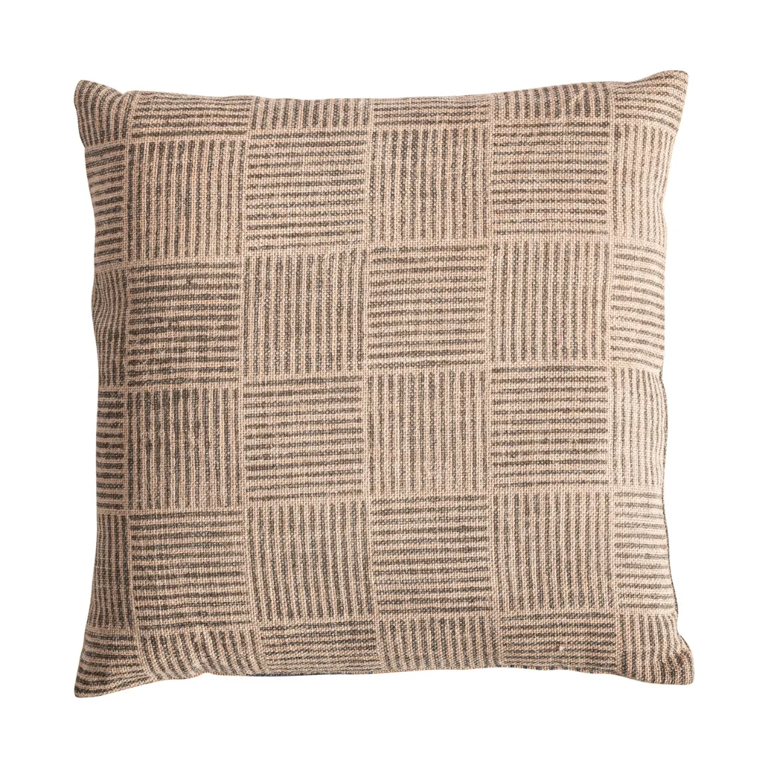 Cojín Khepri de estilo clásico fabricado en yute en color beige combinado con fibra natural en color negro. Producto desenfundable. Incluye relleno.