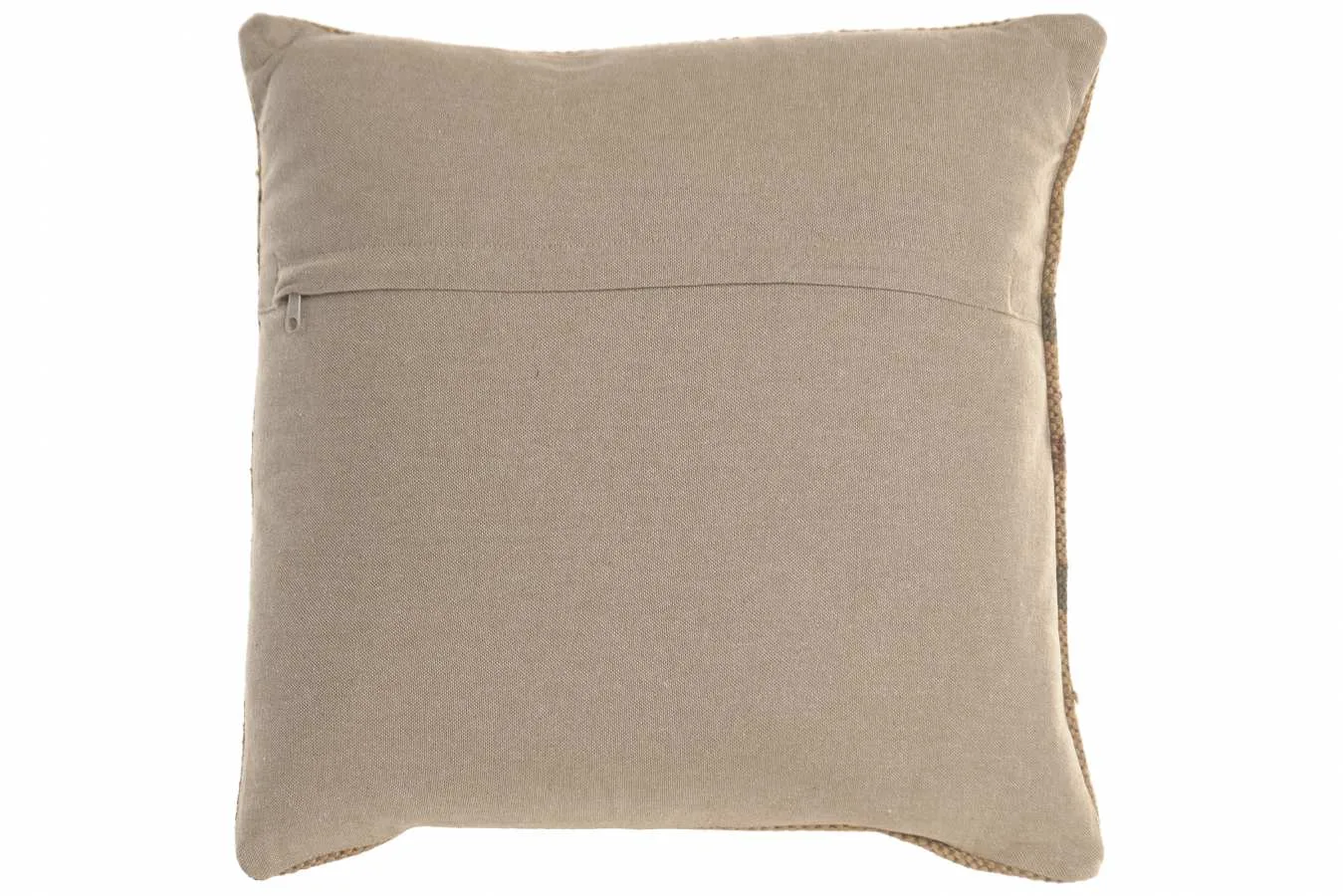 El cojín Kilim de lana y yute destaca por su diseño inspirado en los tradicionales tejidos kilim y por la calidez de sus fibras naturales. Su formato cuadrado de 45 × 45 cm aporta textura y un estilo artesanal perfecto para sofás, camas o sillones. Incluye relleno, por lo que está listo para usar y añadir un toque natural y acogedor al espacio.