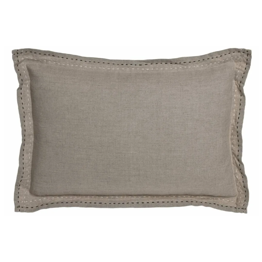 El cojín de lino con pespunte destaca por su estética sencilla y atemporal, ideal para aportar textura y calidez a cualquier espacio. Su formato rectangular de 40 × 60 cm es perfecto para complementar sofás, camas o sillones, integrándose fácilmente en decoraciones naturales o mediterráneas. Incluye relleno, por lo que está listo para usar y añadir un toque elegante y relajado al ambiente.