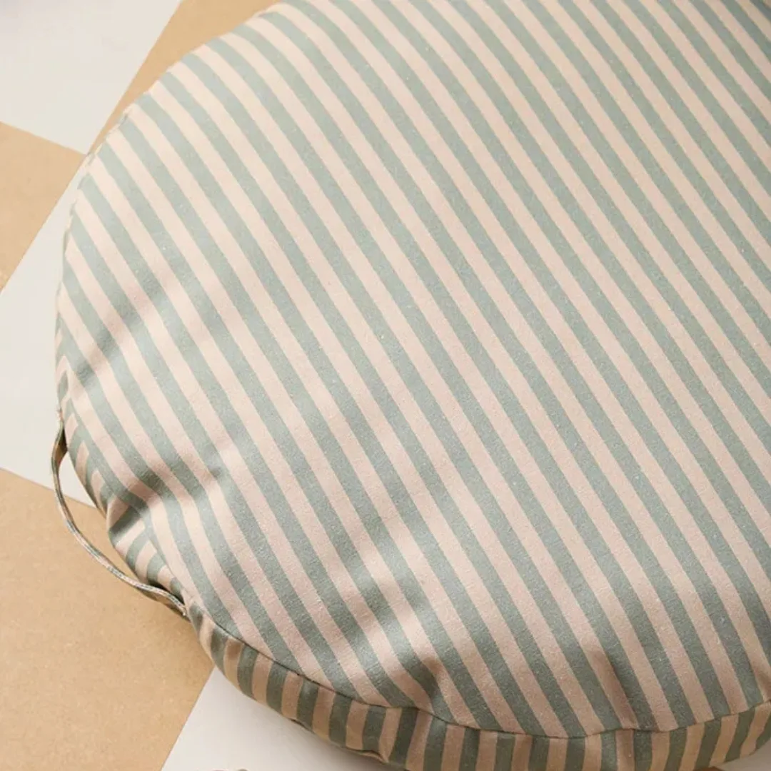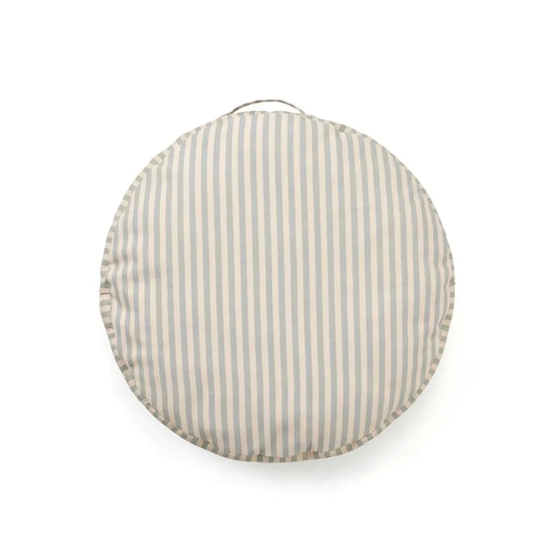 El cojín de suelo a rayas de 60 cm ofrece una comodidad excepcional gracias a su confección en resistente lona de algodón. Ideal para crear un rincón de lectura, un espacio de juego o una zona de descanso, combina suavidad, durabilidad y un diseño atemporal en tonos azul y blanco. Su práctica asa lateral permite moverlo fácilmente de un lugar a otro, adaptándose a cualquier ambiente del hogar.