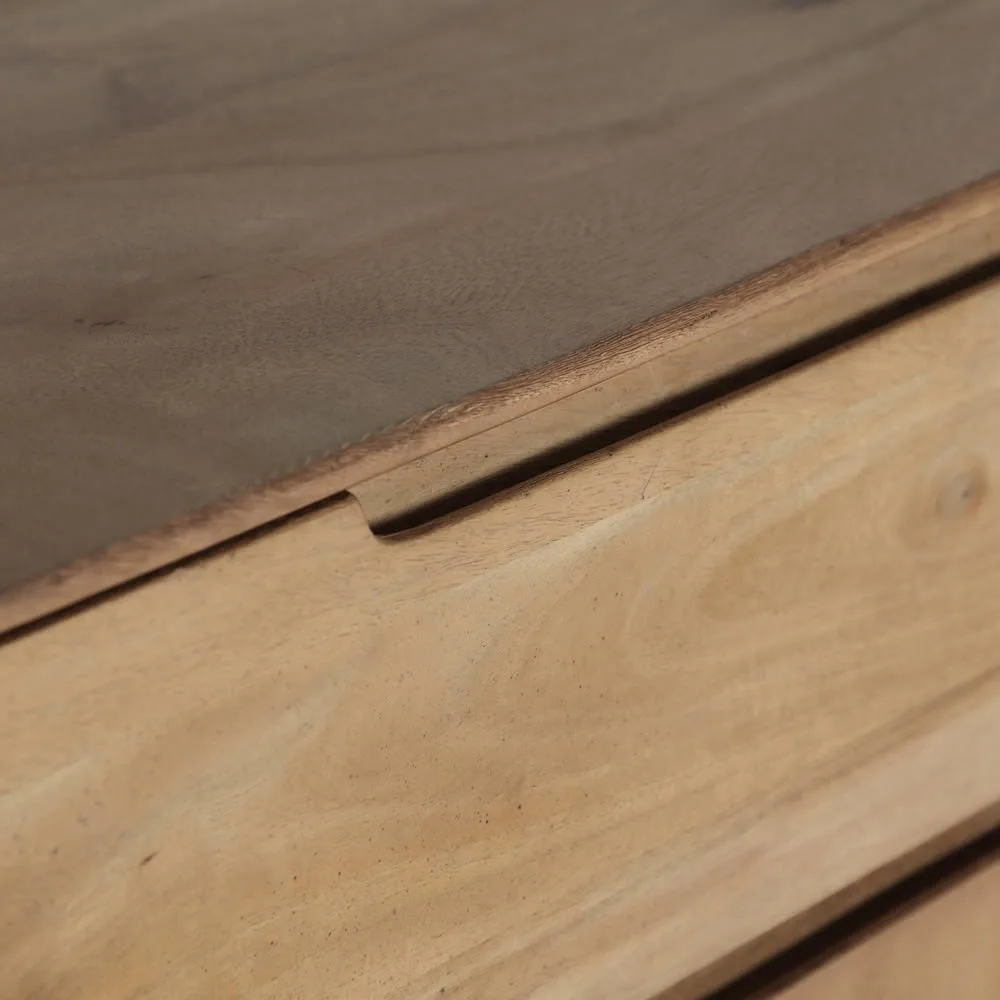 La cómoda Gaillac combina funcionalidad y estética con un diseño de inspiración escandinava que transmite equilibrio y calidez. Fabricada en madera de mango en tono natural, ofrece un tacto agradable y una presencia serena, ideal para dormitorios o salones donde se busca orden sin renunciar a un estilo atemporal y bien definido.