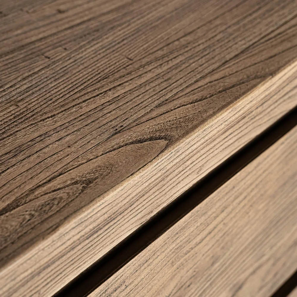 La Cómoda Norvik de Vical Home, fabricada en madera de olmo en color marrón, aporta practicidad y calidez a los espacios. Su estilo contemporáneo la convierte en una pieza versátil para dormitorios y espacios que buscan funcionalidad con carácter.