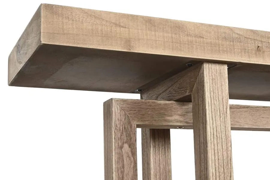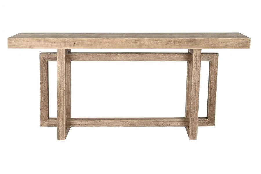 Consola de madera de abeto en color natural, de diseño moderno y líneas depuradas. La ligereza visual del abeto y su acabado natural cálido la convierten en una pieza versátil para entradas, pasillos y detrás de sofás que buscan una consola de madera natural de gran formato con un acabado limpio y contemporáneo. Mide 180 cm de ancho, 40 cm de fondo y 81 cm de alto.