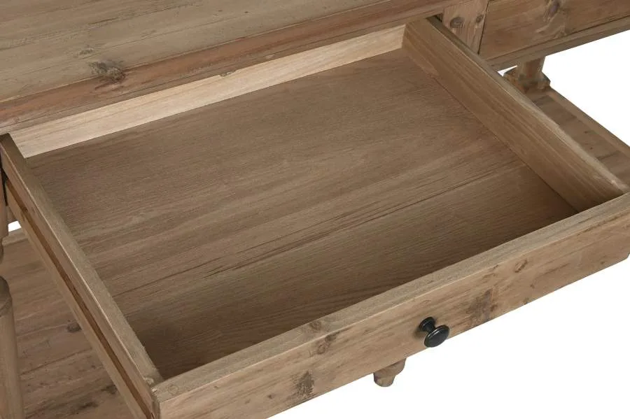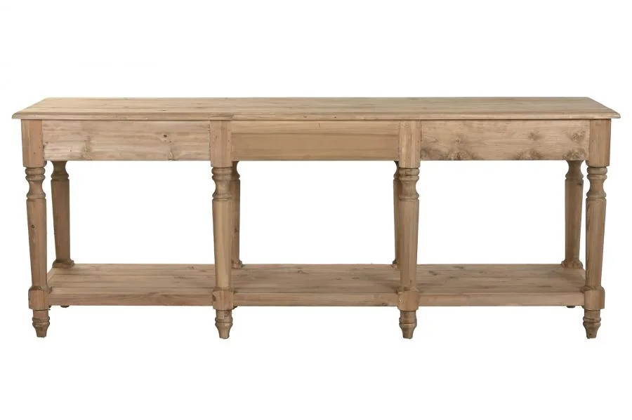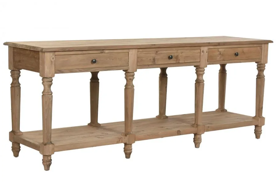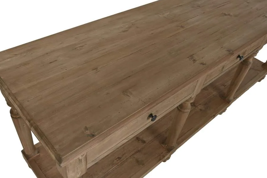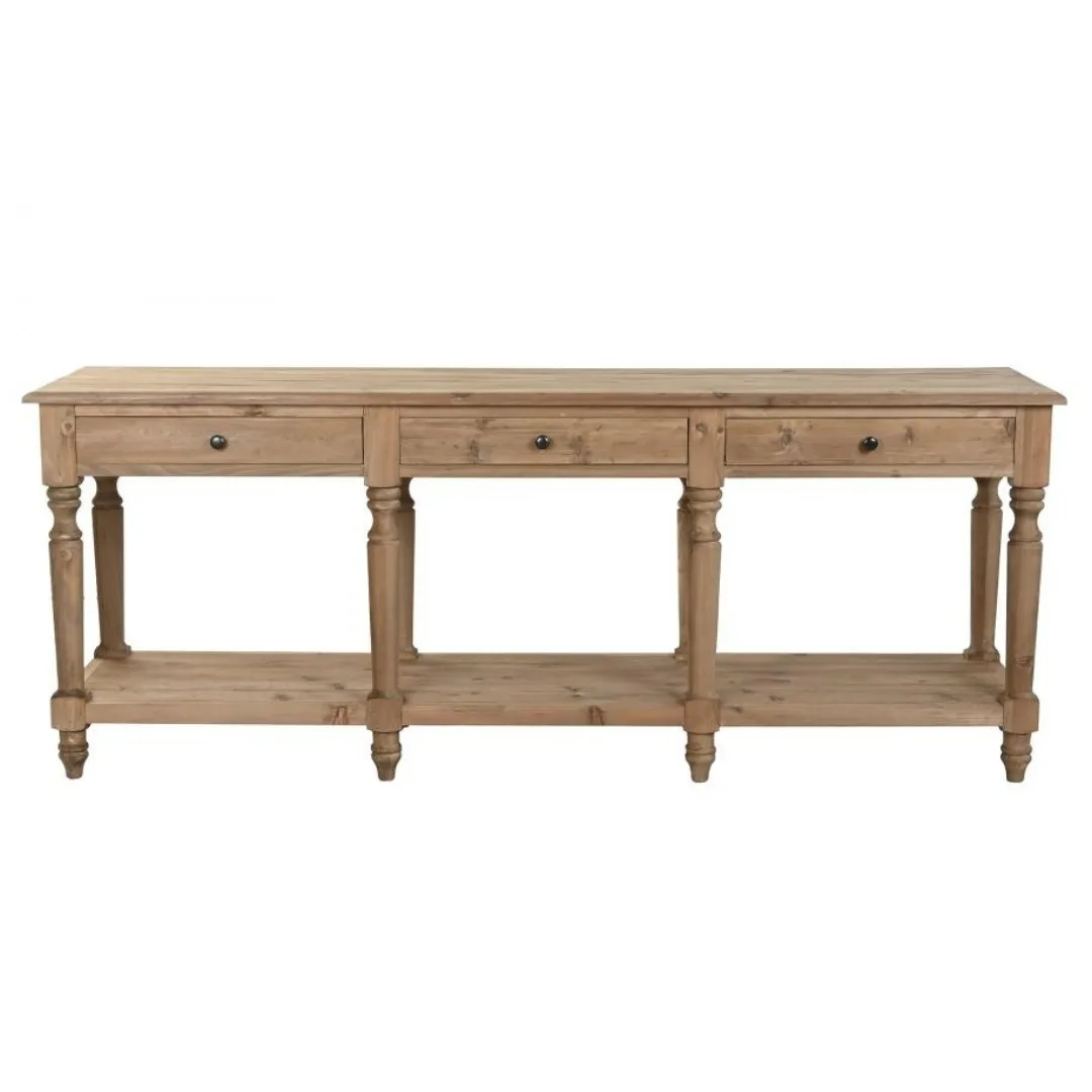 Consola de abeto y madera reciclada de inspiración alpina y carácter rústico y sostenible. Su gran formato y la combinación de ambos materiales naturales aportan calidez y autenticidad a entradas, pasillos y salones que buscan un mueble de madera reciclada con personalidad y conciencia medioambiental. Mide 200 cm de ancho, 55 cm de fondo y 78 cm de alto.
