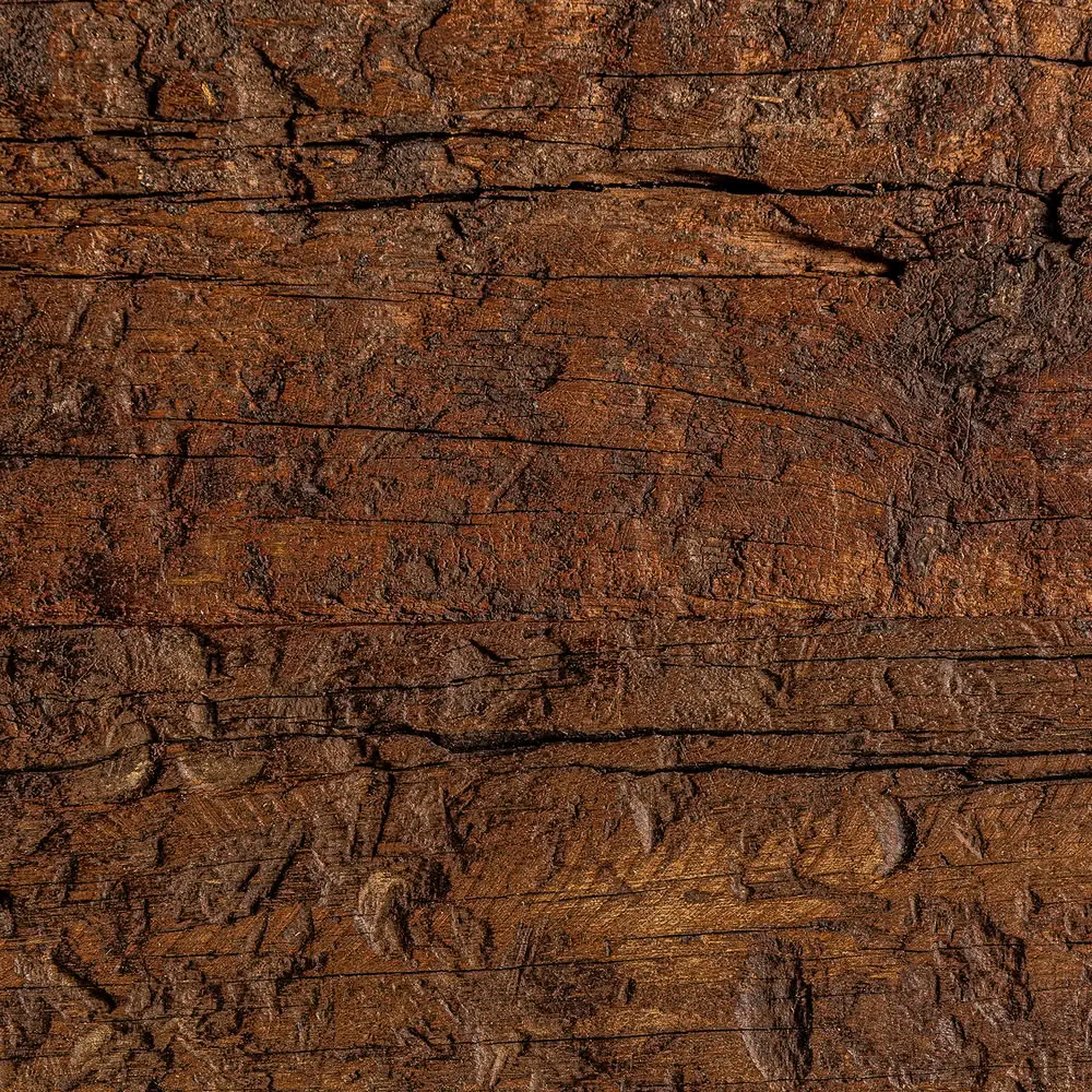 Consola Badai de estilo étnico fabricado en madera de mango reciclada en color marrón con acabado envejecido. Producto desmontable.