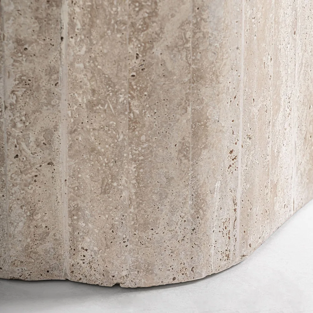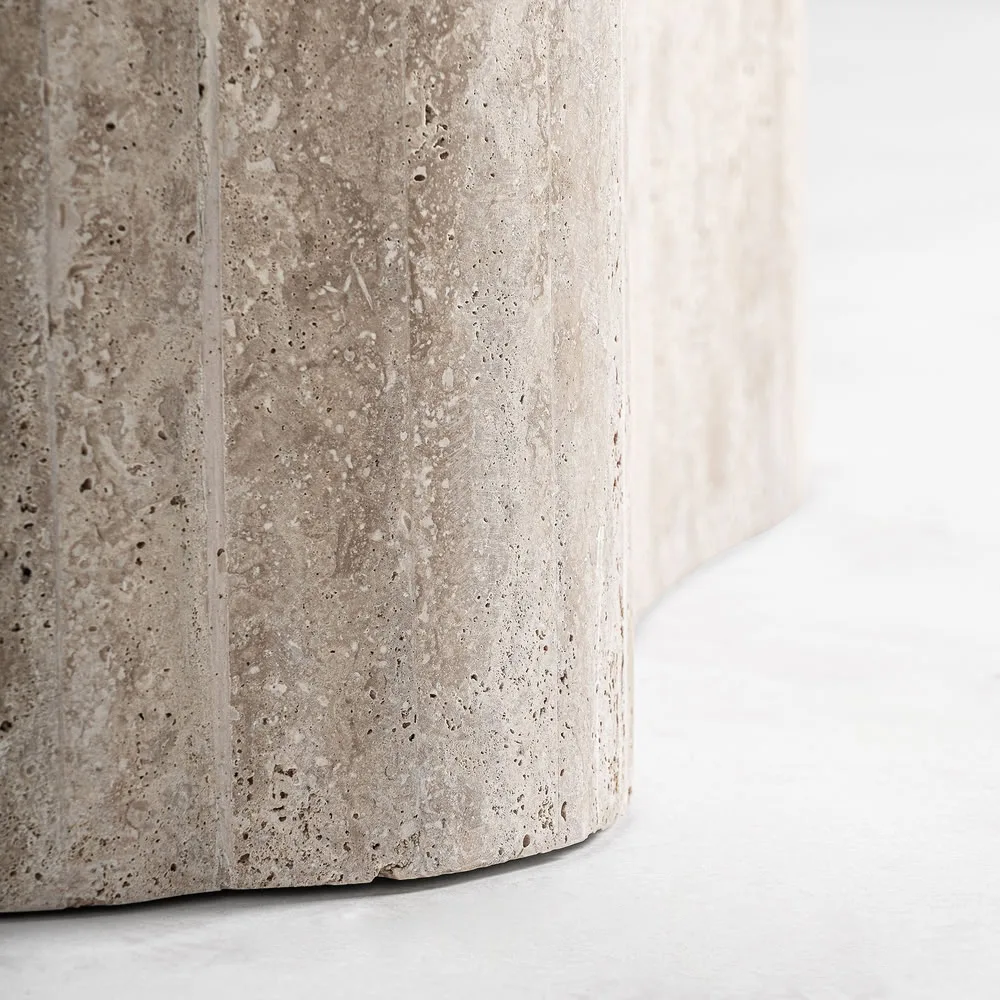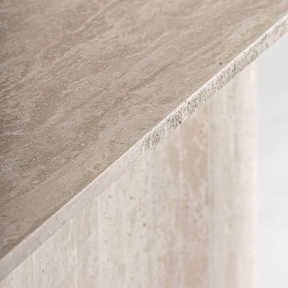 Consola Thiennes de estilo art deco fabricado en travertino en color beige. Producto desmontable.