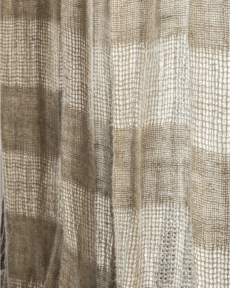 Su opacidad media, el acabado en flecos y el cuelgue mediante trabillas pasabarras crean una estética relajada y elegante.