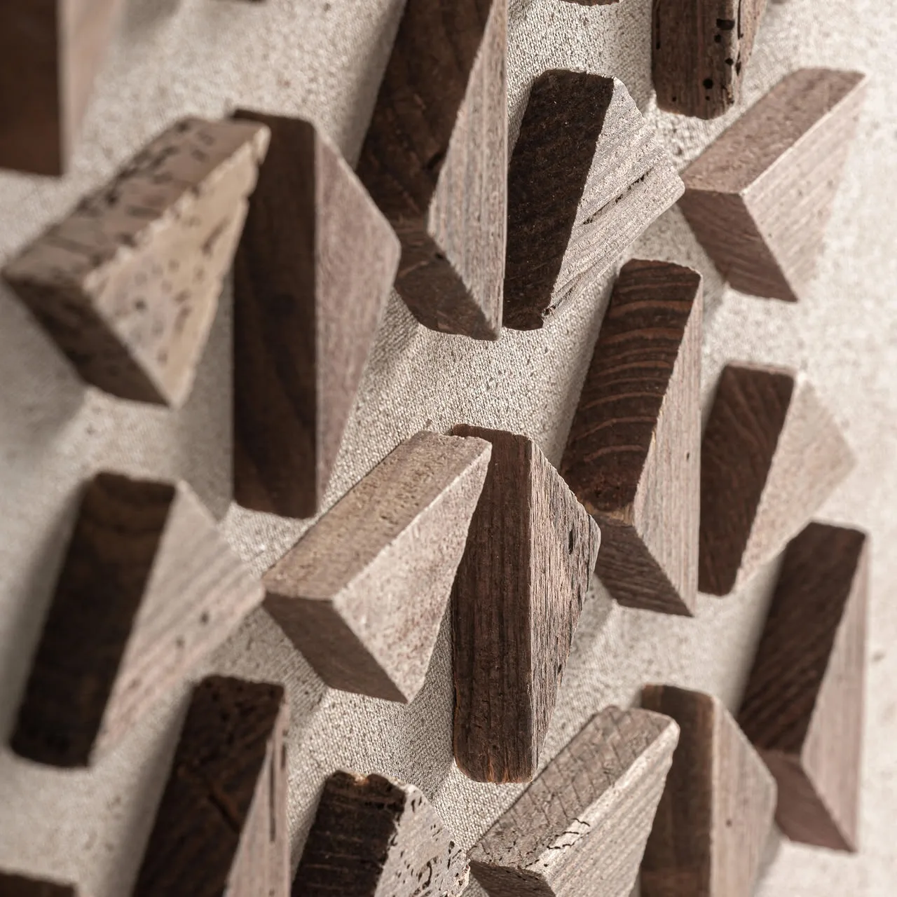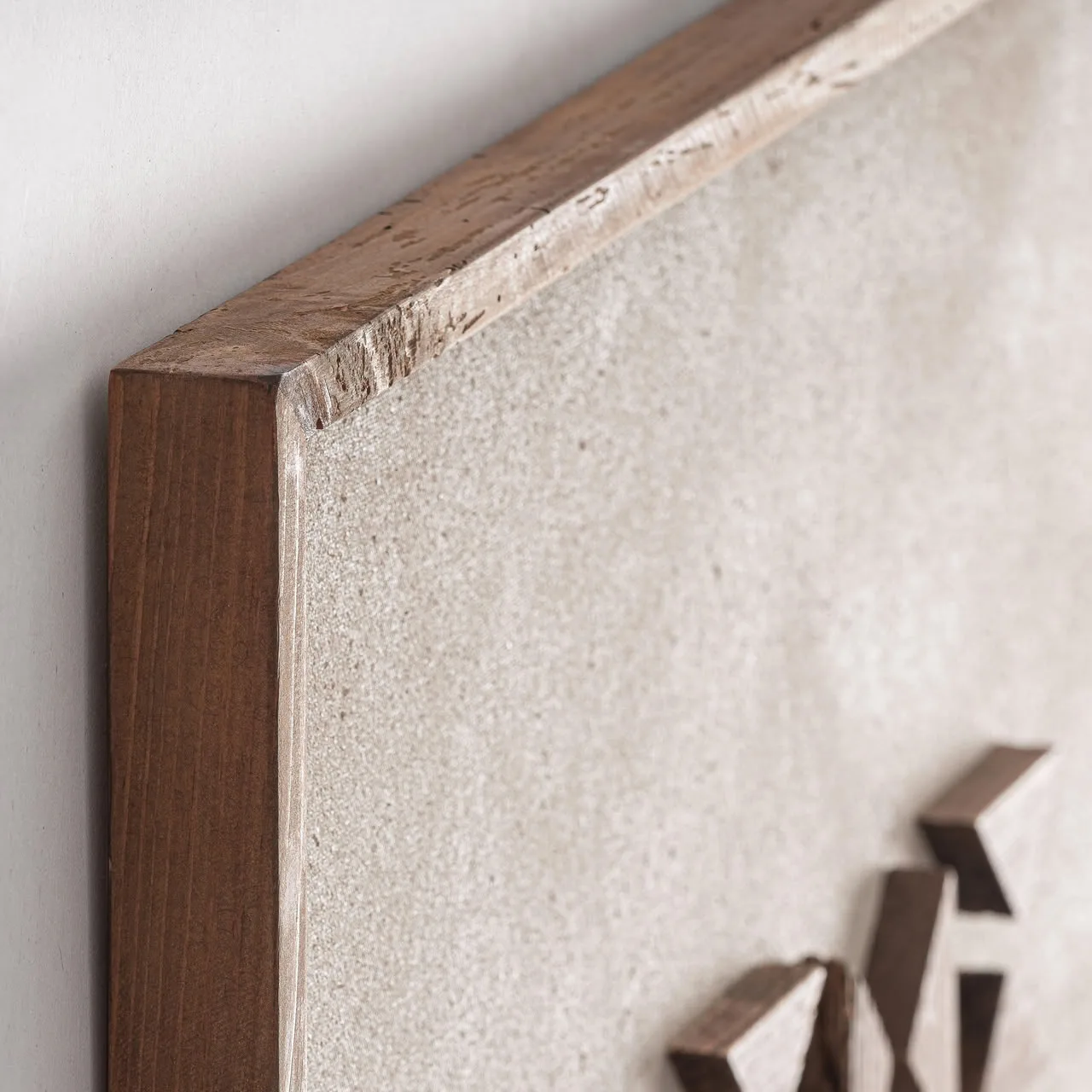Cuadro Akrin de estilo contemporáneo fabricado en madera de pino reciclado en color marrón en color blanco roto.