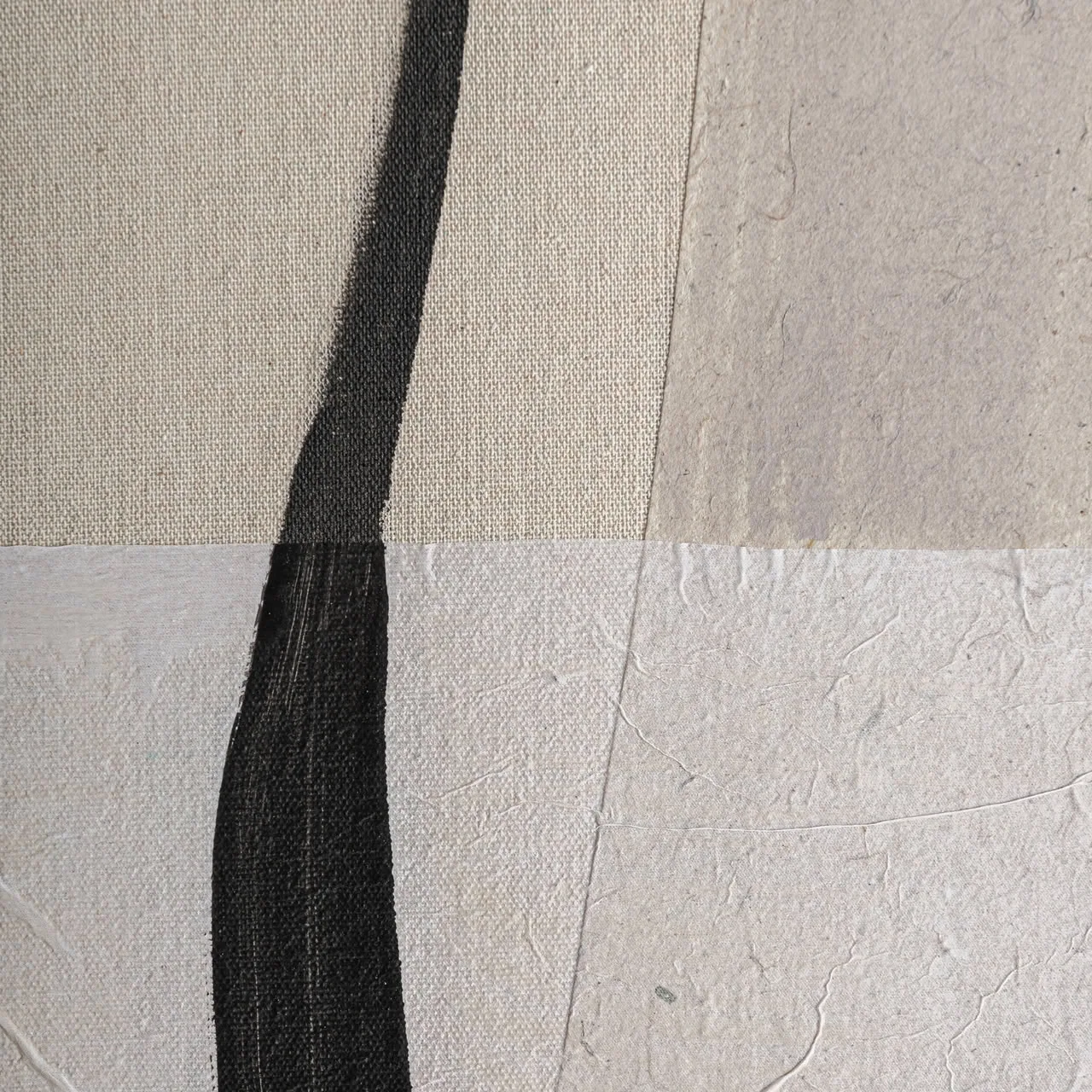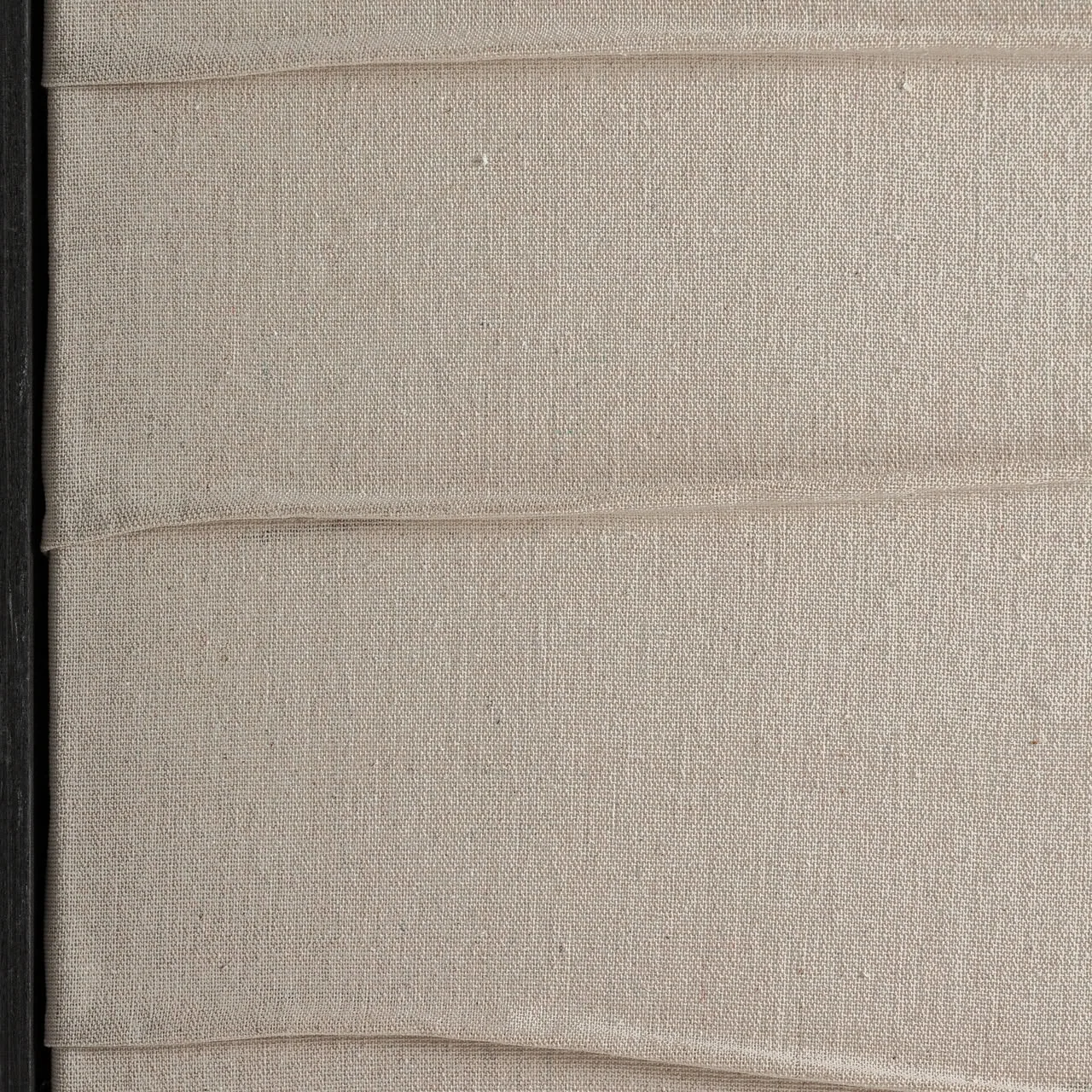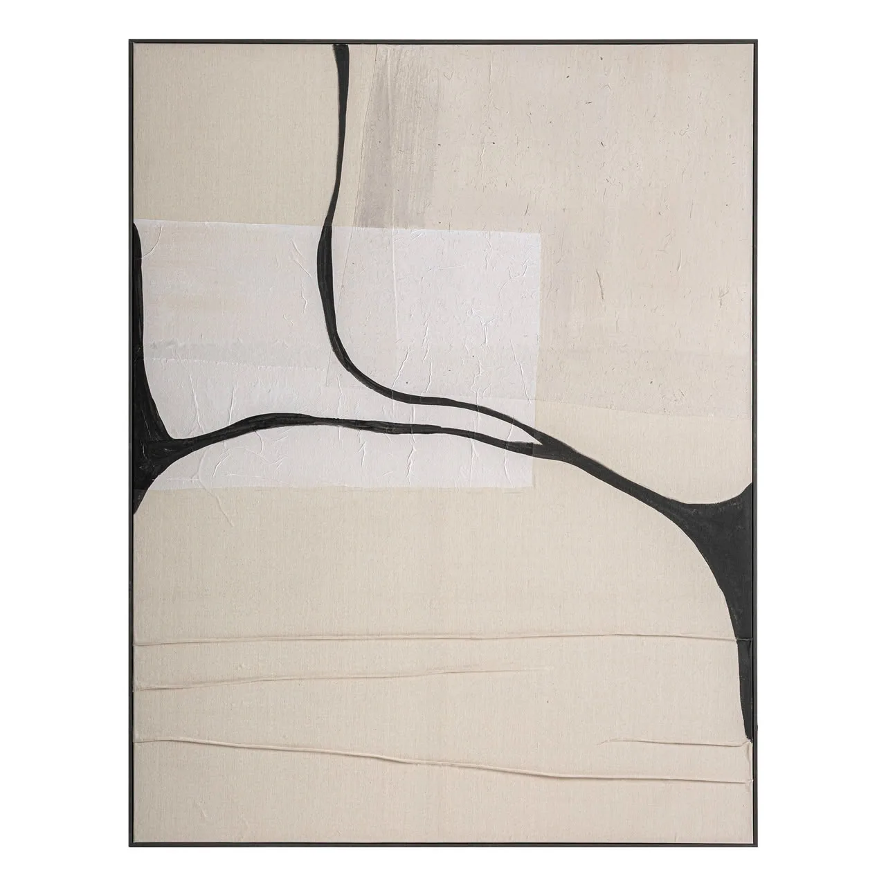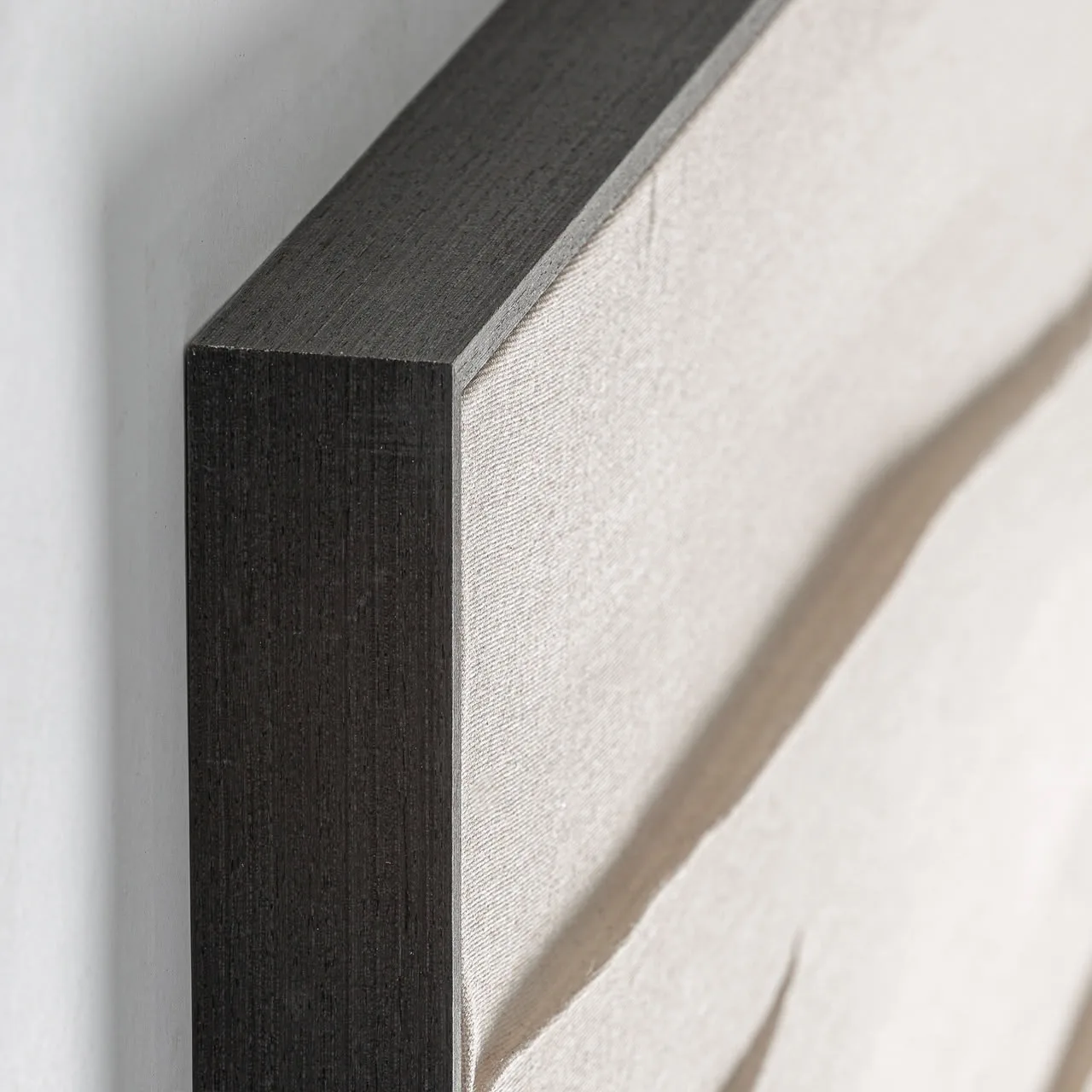 Cuadro Kai de estilo contemporáneo, fabricado en lienzo en color beige, combinado con madera de pino en color negro.